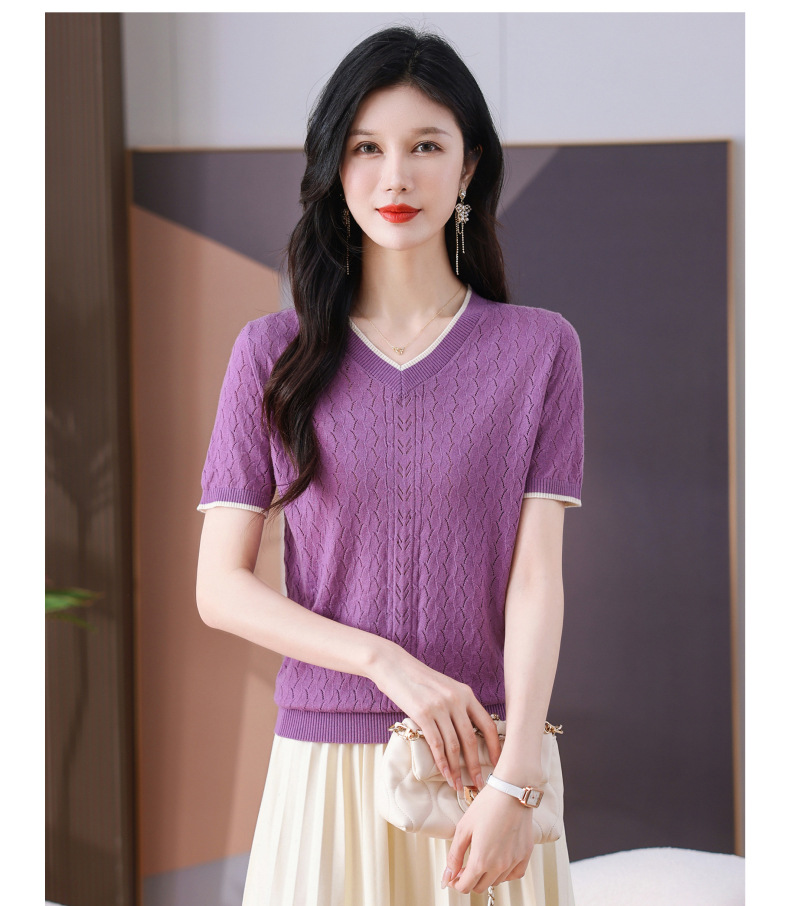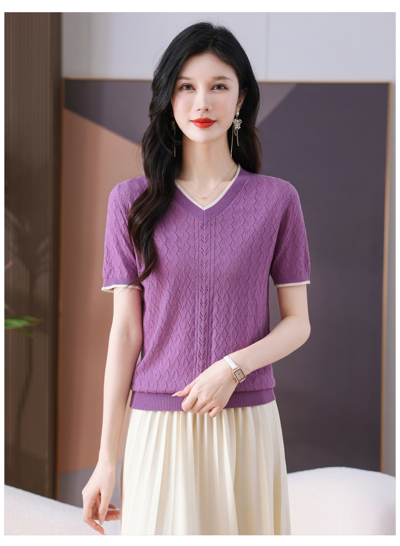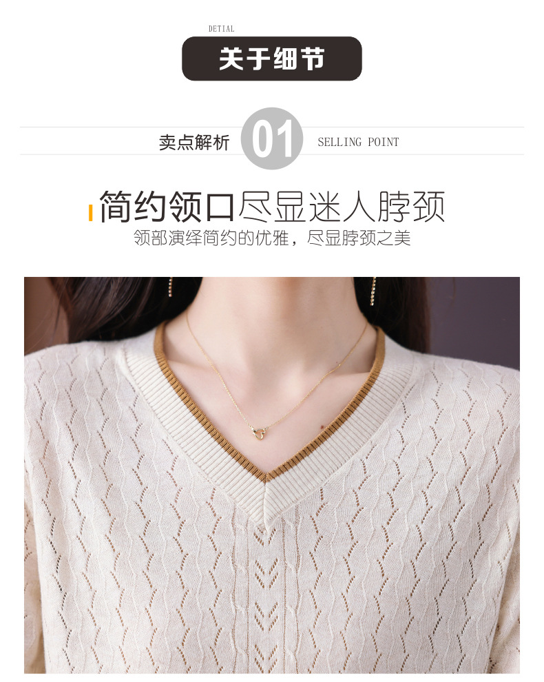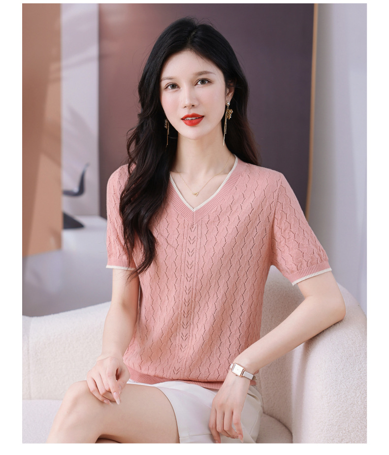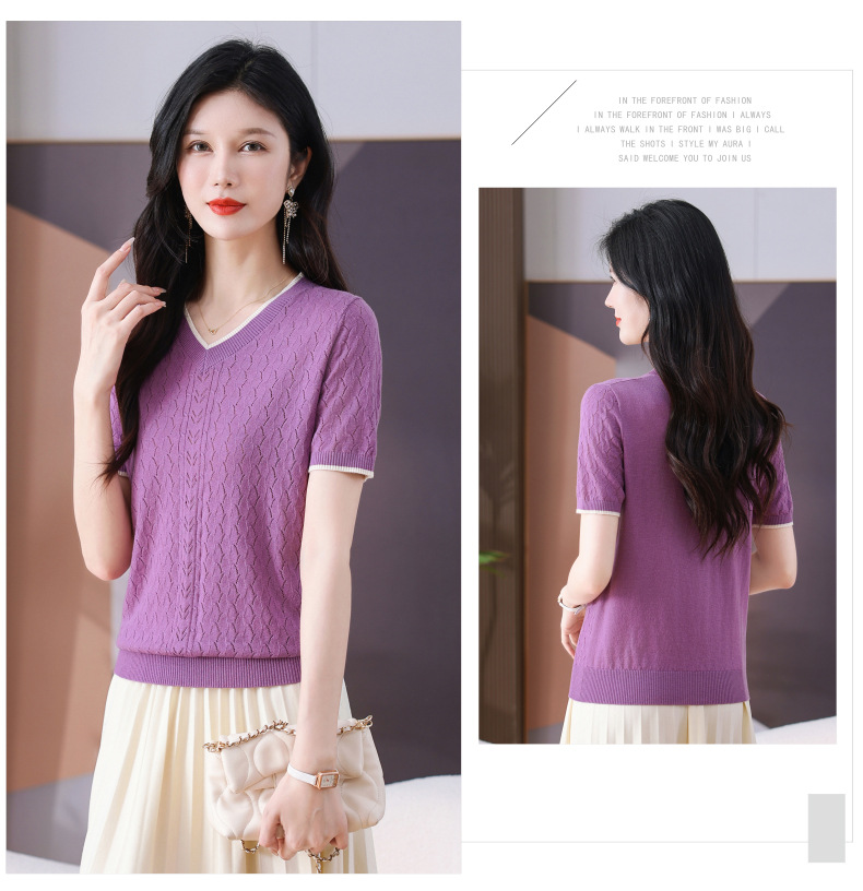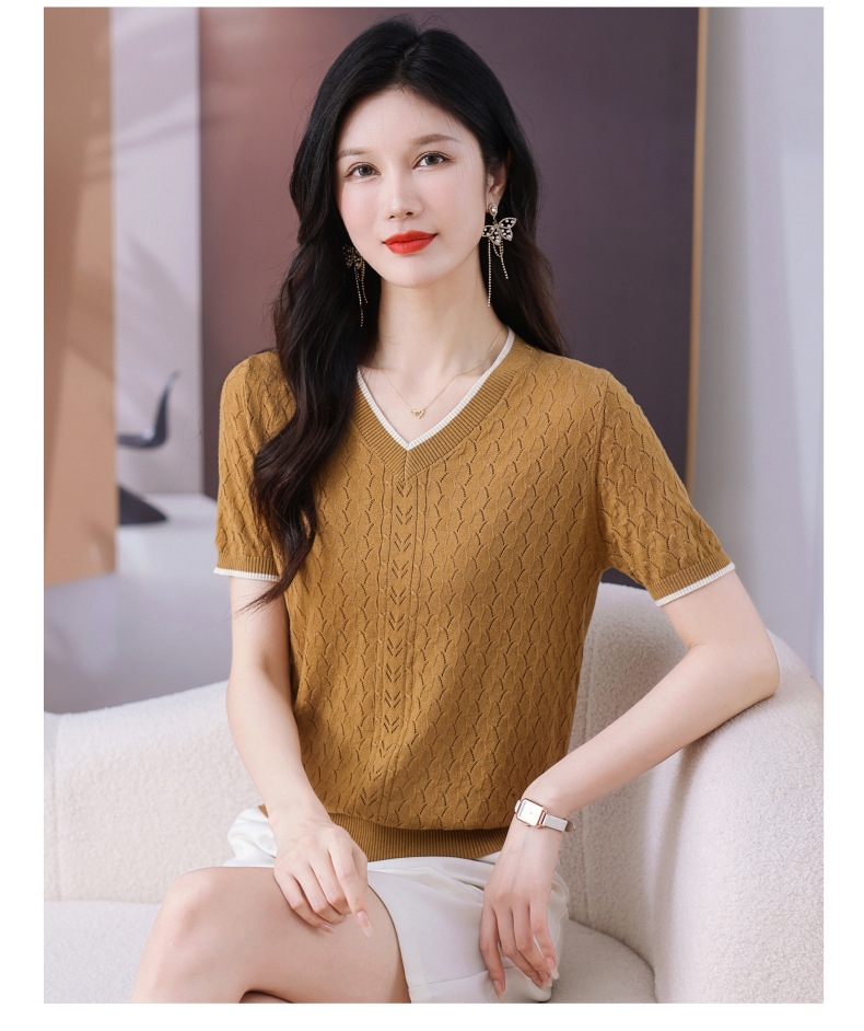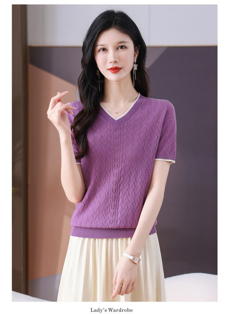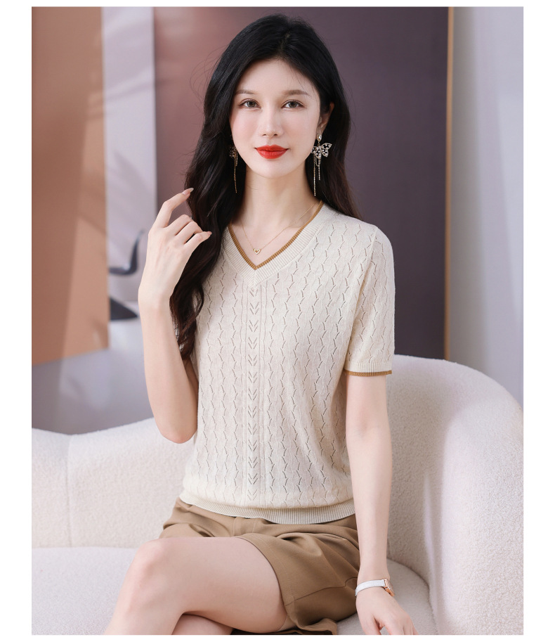 CC-101-355夏装女2025年新款V领年轻减龄天丝针织衫镂空打底衫上衣潮