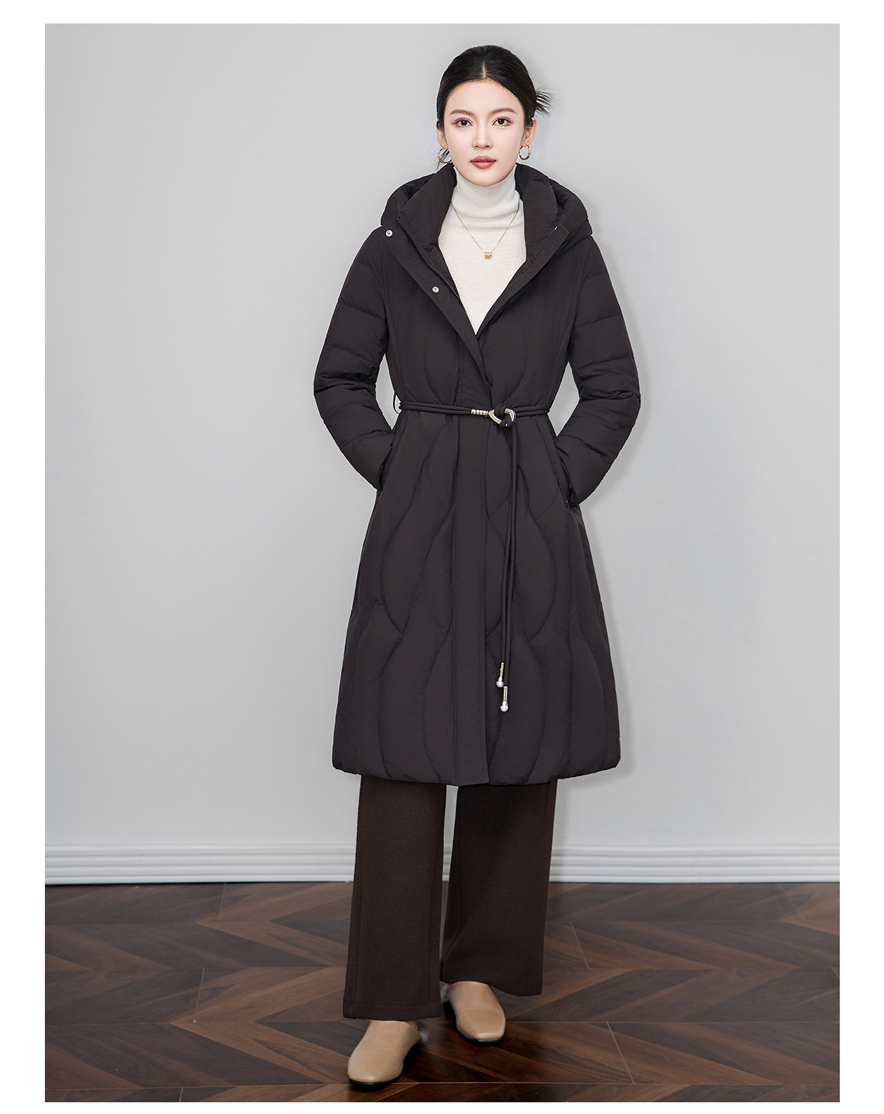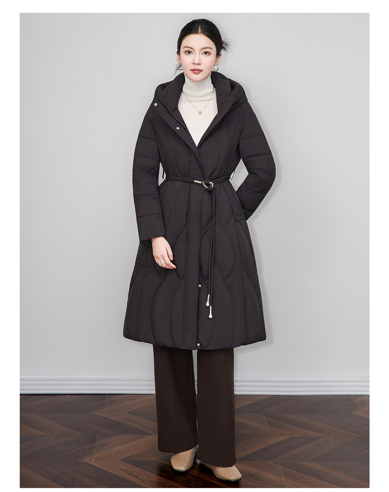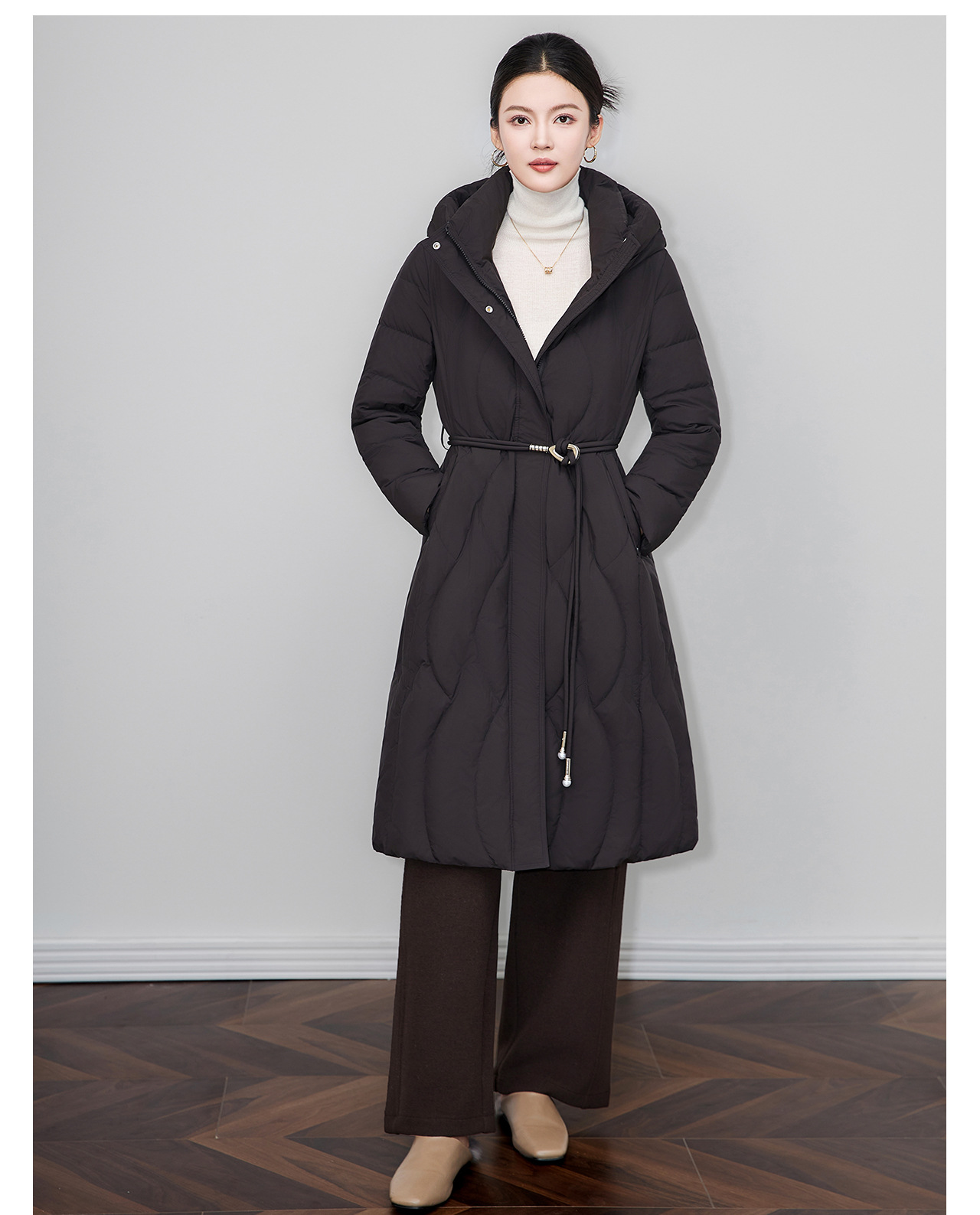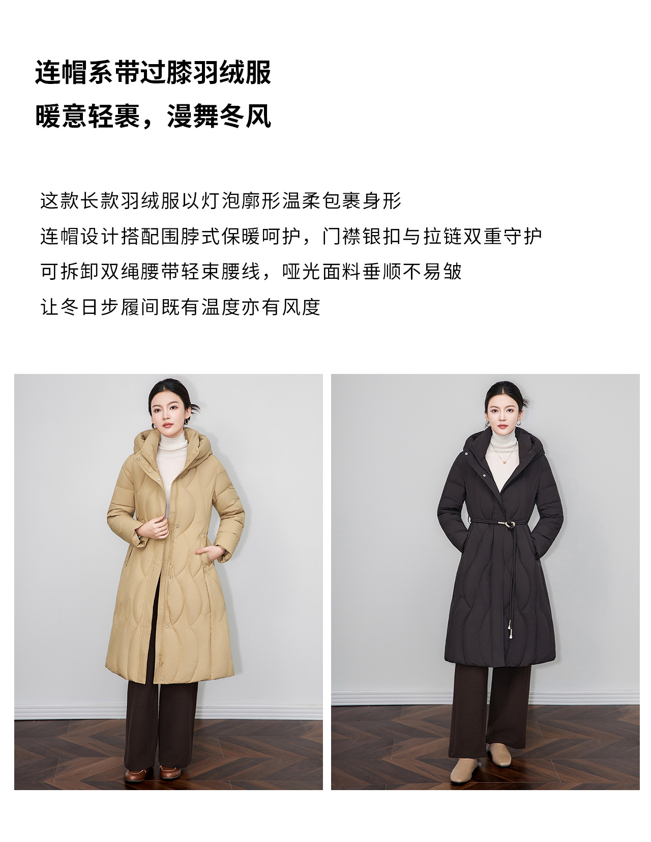 「高货wl」全新升级【铂金会员735/天猫999/差价264】(93419)洛诗琳加厚系带收腰90羽绒服2025冬季长款连帽保暖外套女
