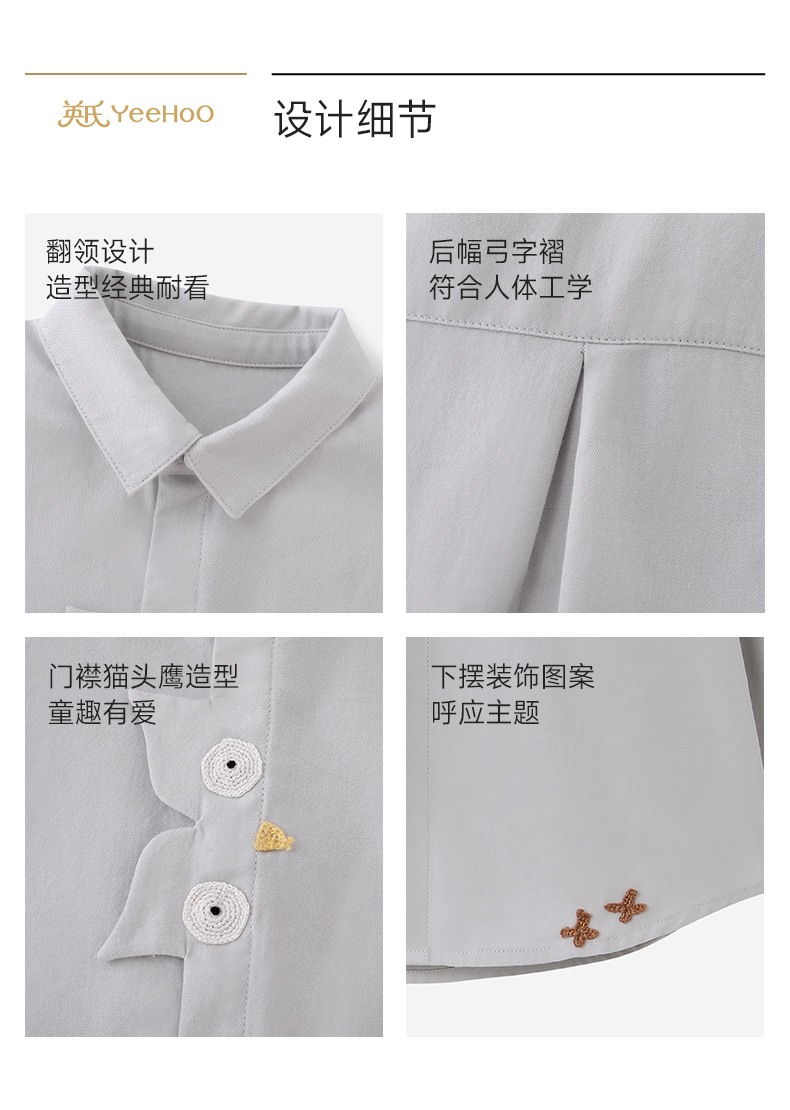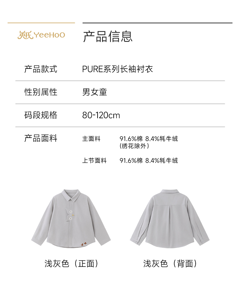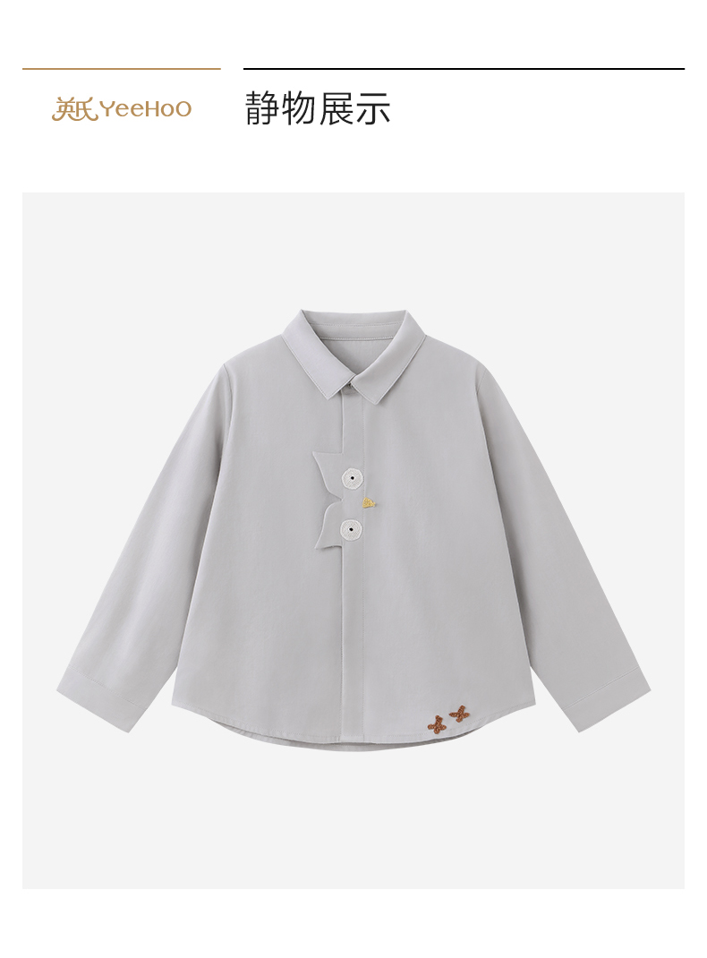 【高定系列】英氏儿童衣服男童春夏款长袖衬衫女童百搭浅灰色衬衣