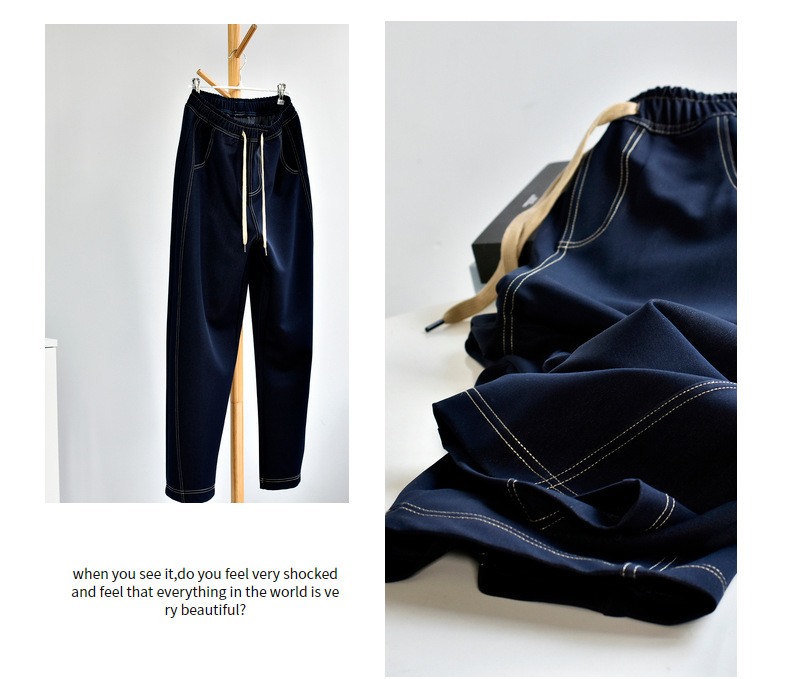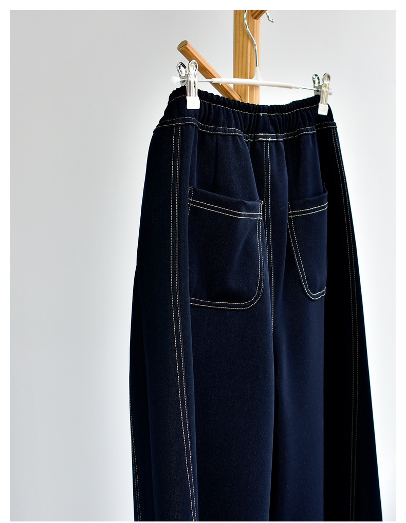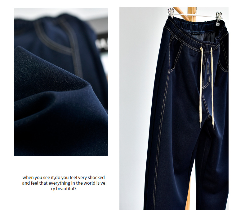 丁摩 【明线弯刀牛仔】春夏新款女装明线弯刀阔腿直筒长腿休闲女裤5ZF-364
