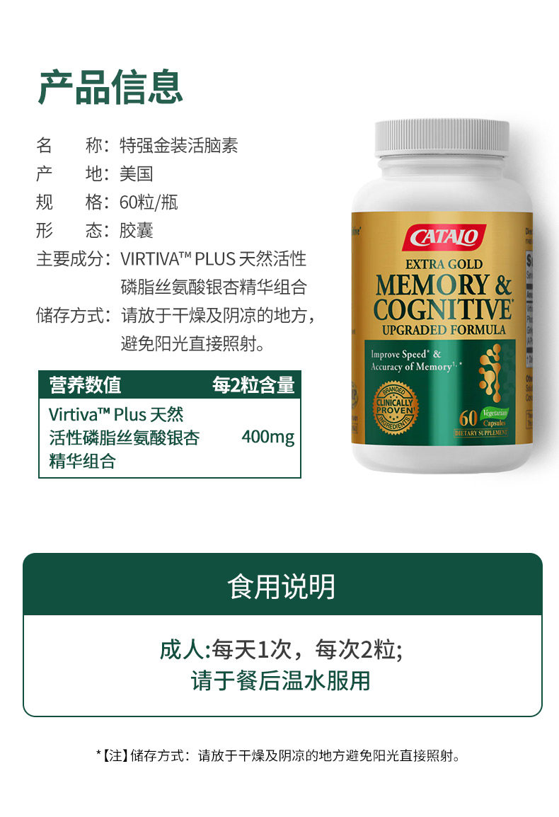 CATALO家得路特强金装活脑素升级配方60粒(2027.4)