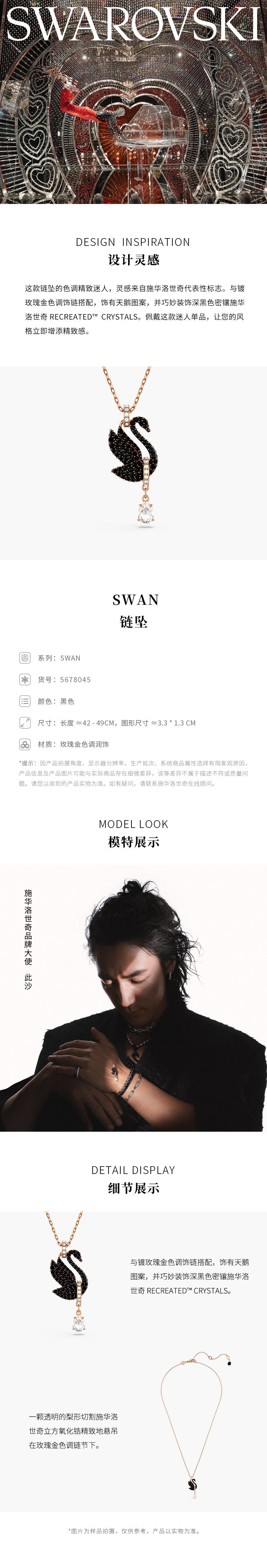 【此沙同款】施华洛世奇Swan黑色天鹅项链