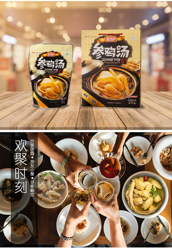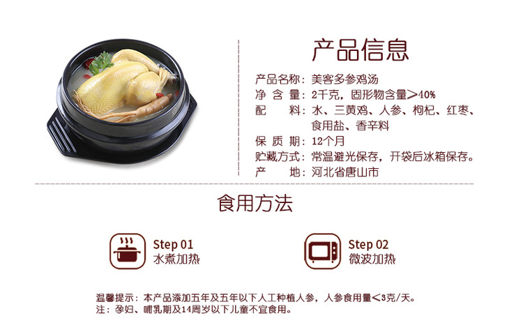 美客多 参鸡汤 2000g 加热即食 韩式人参鸡汤 整鸡滋补品 包邮