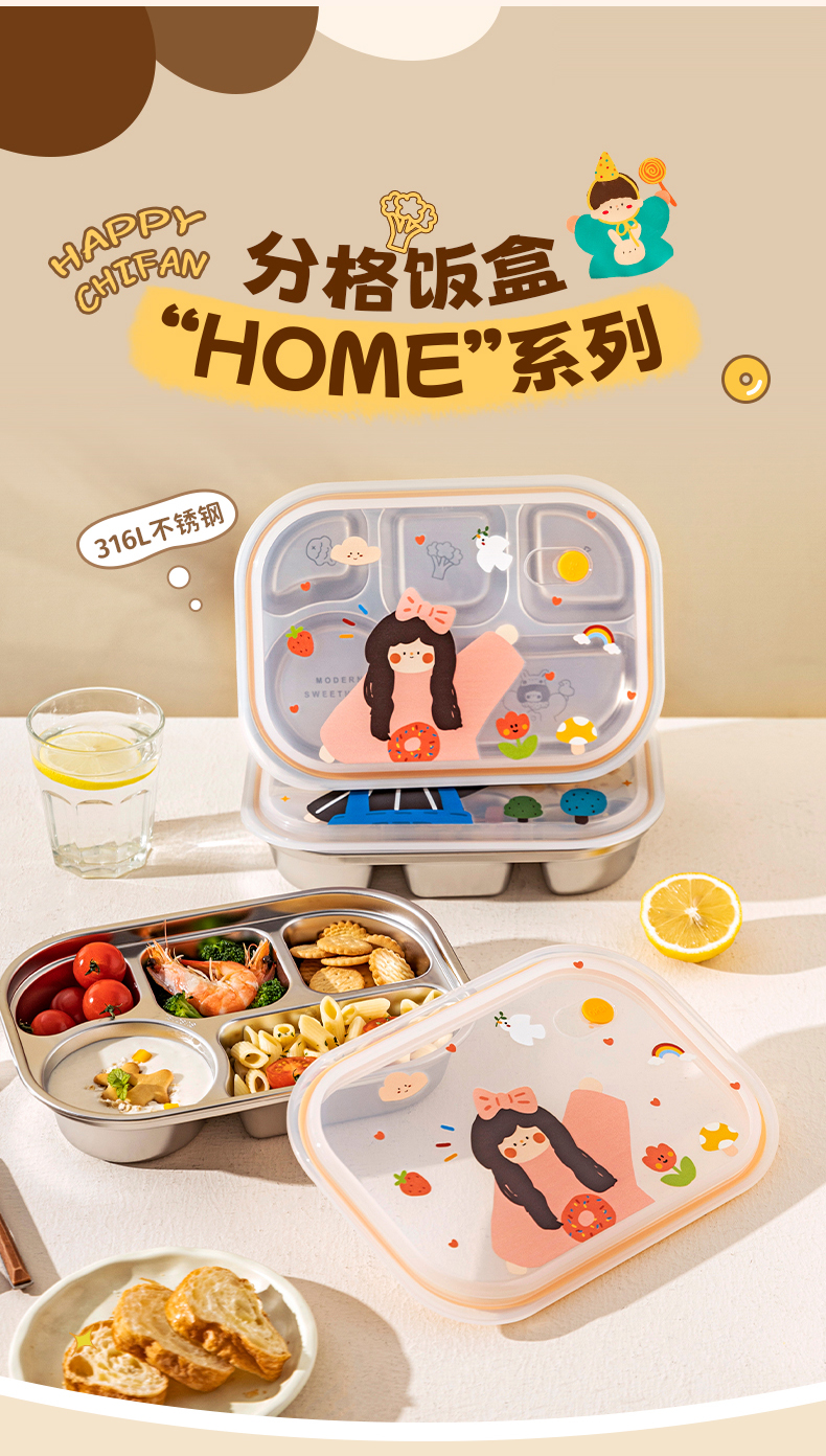摩登主妇316L不锈钢饭盒上班族带饭餐盒2026新款小学生分格便当盒