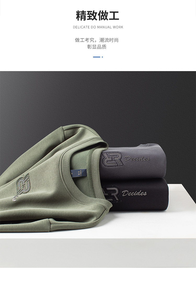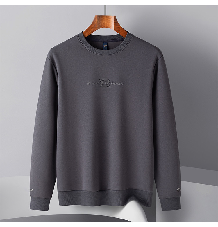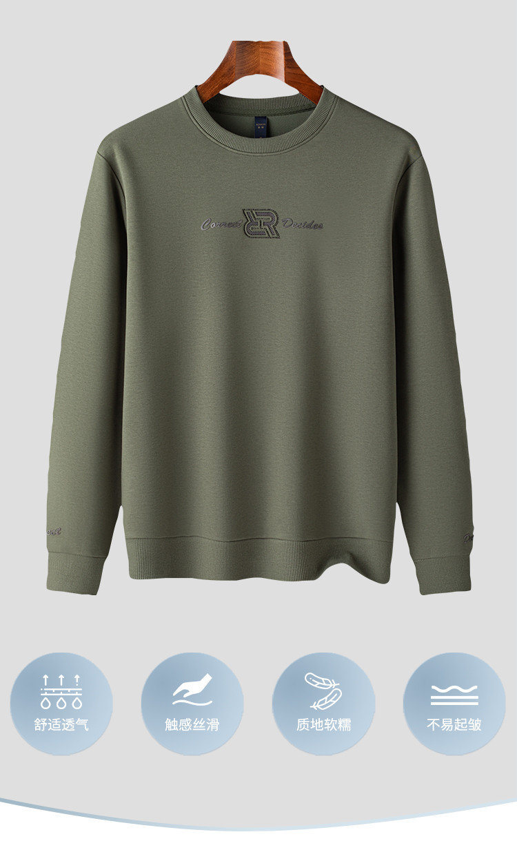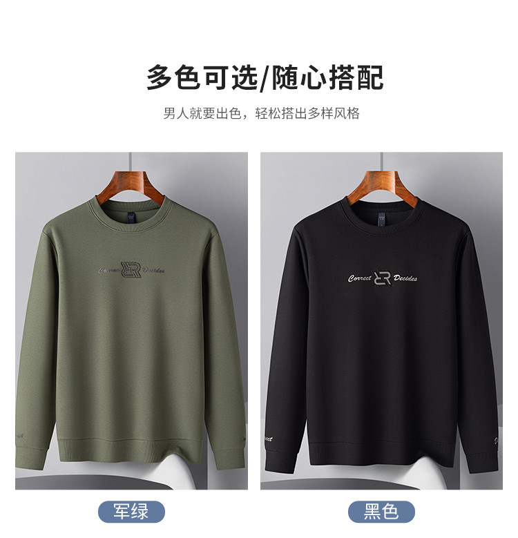 【桑蚕丝混纺】罗蒙春秋男装卫衣激光雕花卫衣男士休闲百搭卫衣圆领长袖T恤上衣男