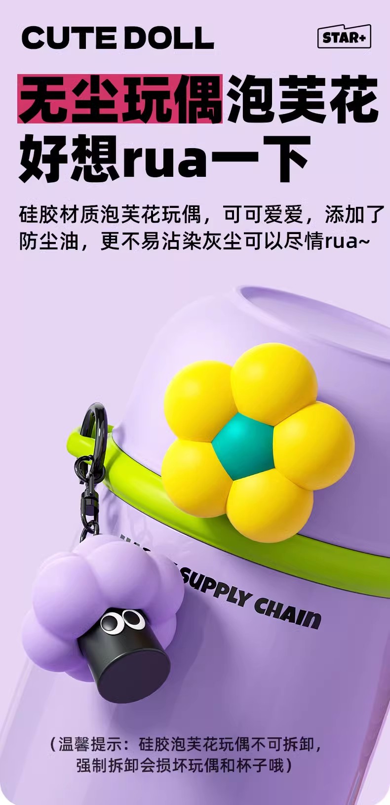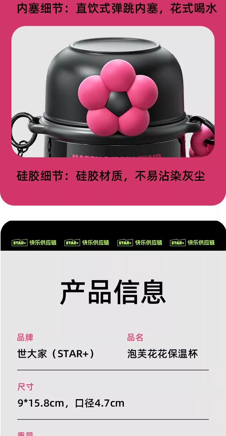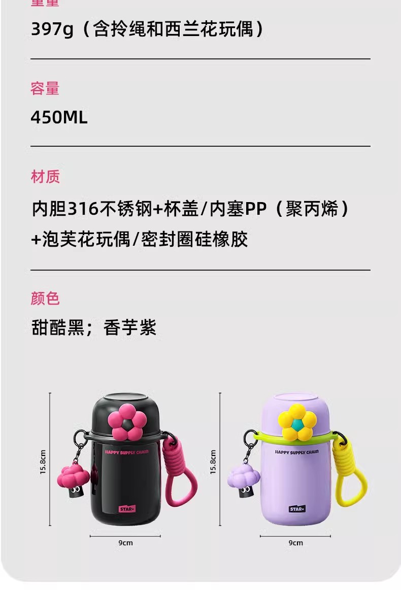 世大家泡芙花花保温杯香芋紫(含挂件)