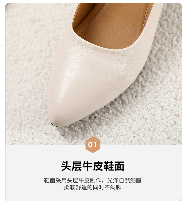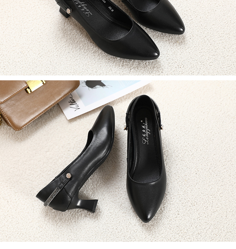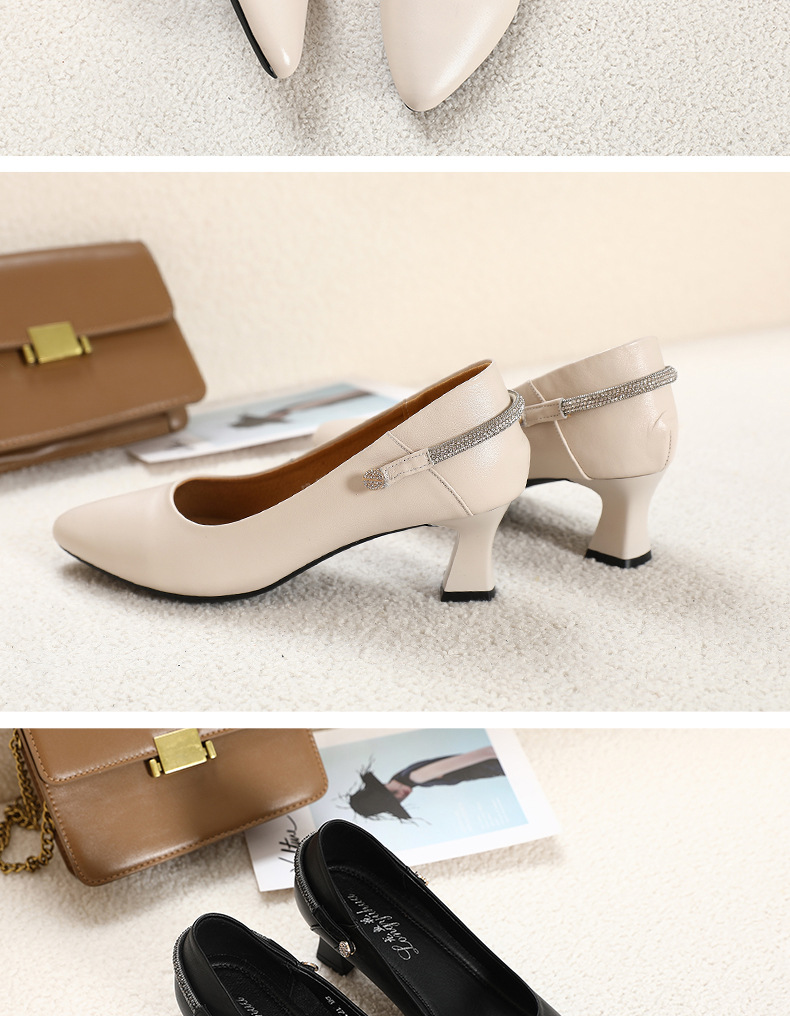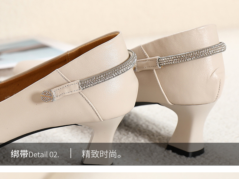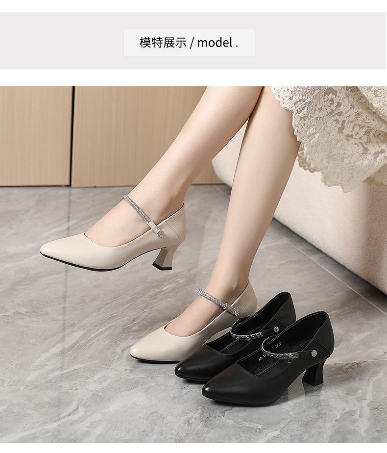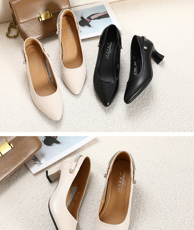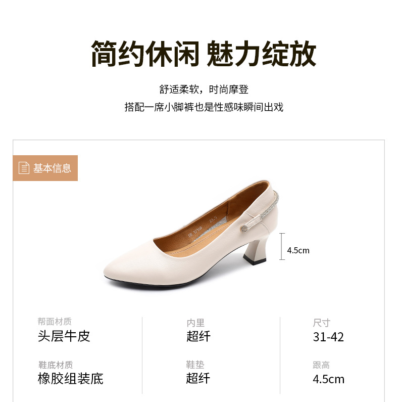 丁摩 真皮中跟鞋女新款春秋季百搭牛皮尖头细跟单鞋女鞋5ZF-17168