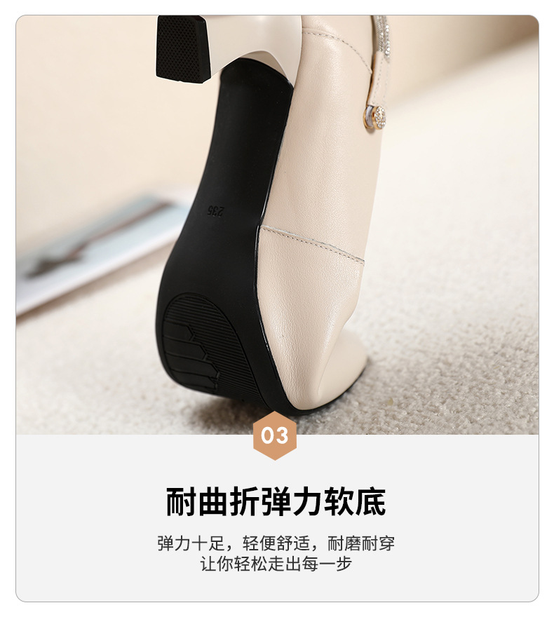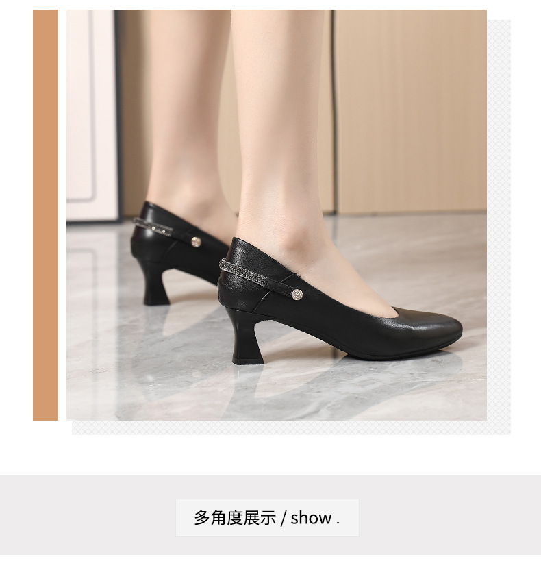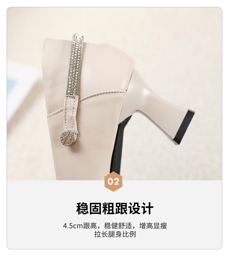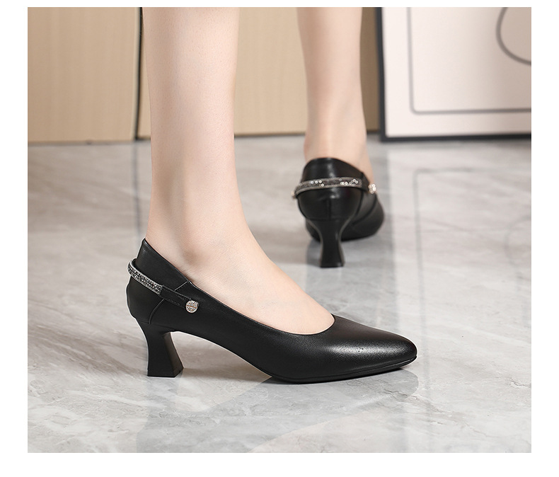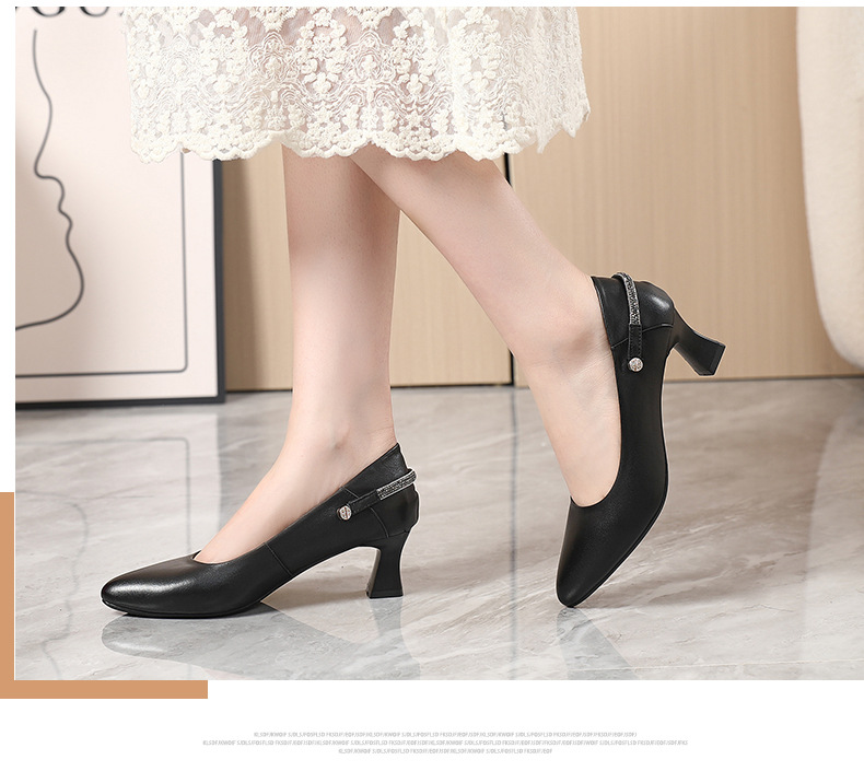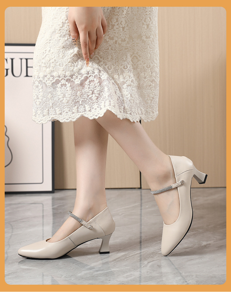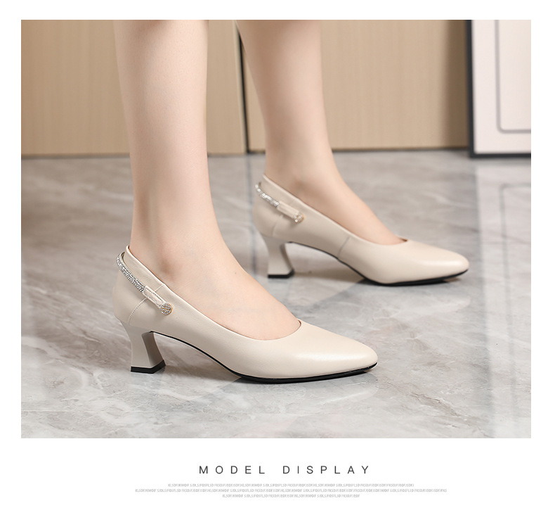 丁摩 真皮中跟鞋女新款春秋季百搭牛皮尖头细跟单鞋女鞋5ZF-17168