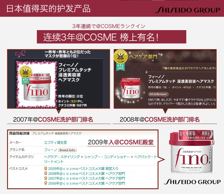 【门店直发】资生堂fino7发膜 gao效渗透美容液焗油膏230g