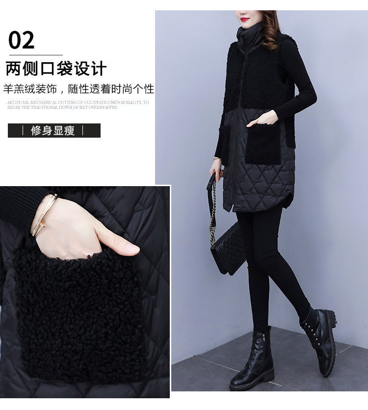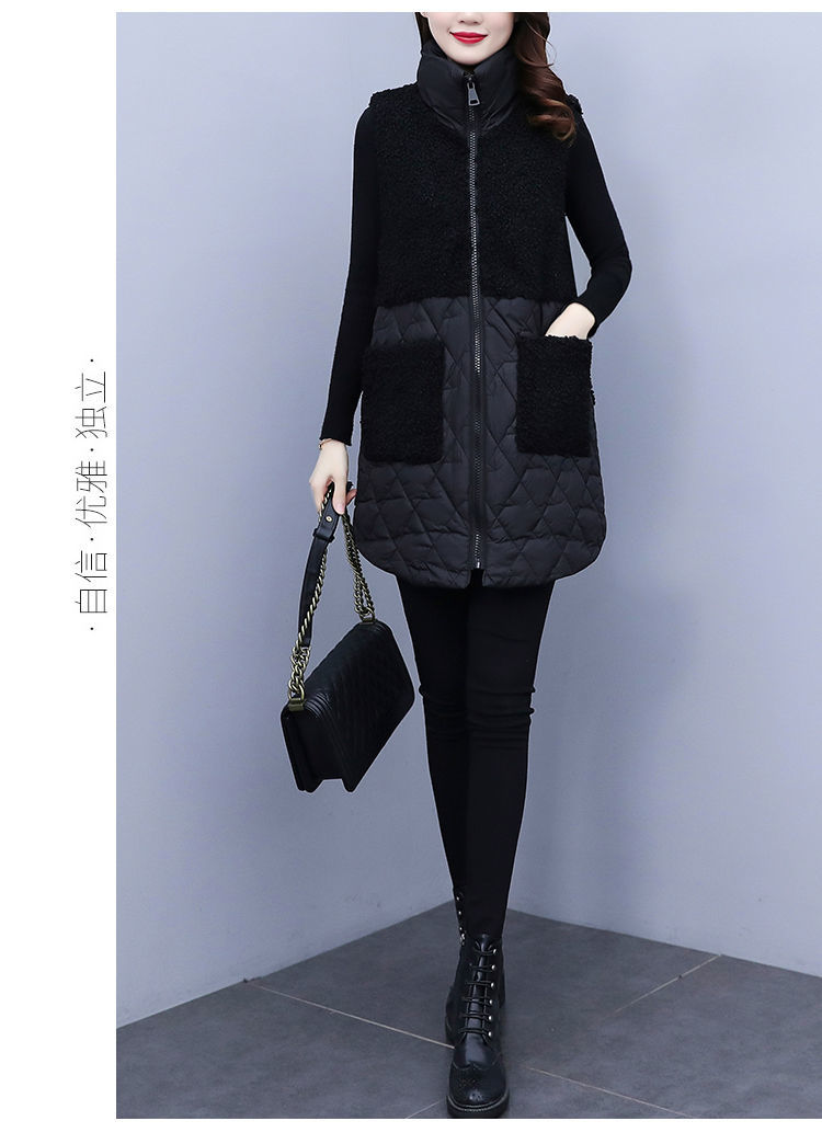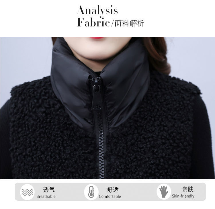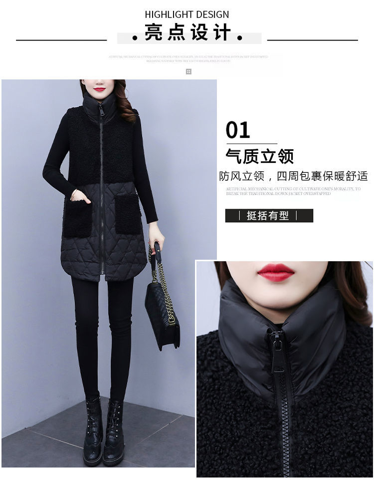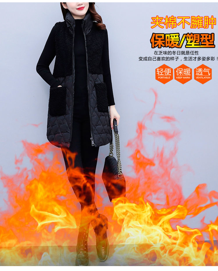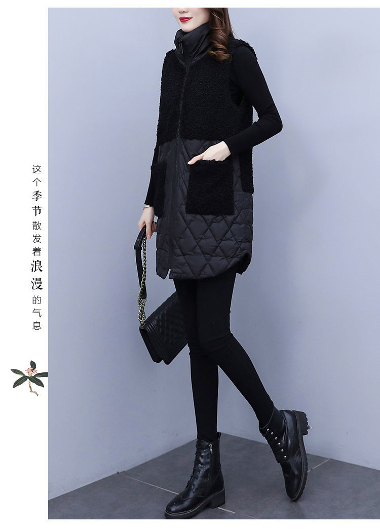 AA HL大码韩版时尚洋气仿羊羔毛拼接夹棉马甲