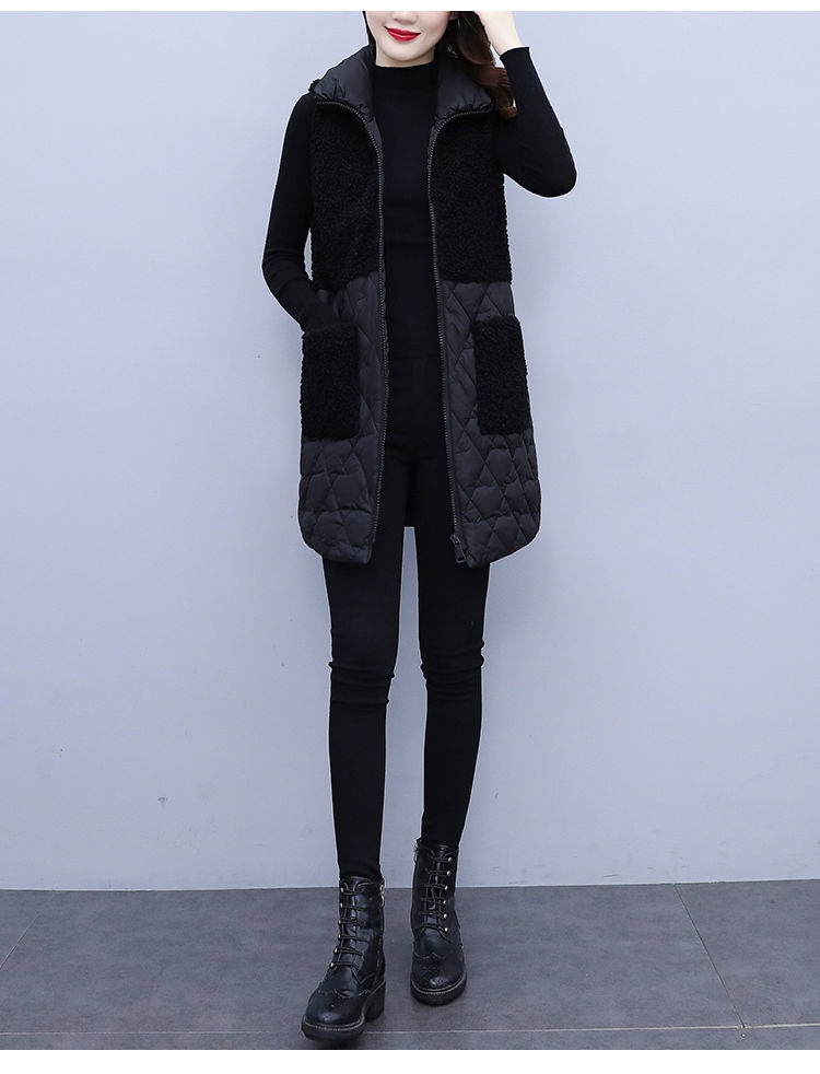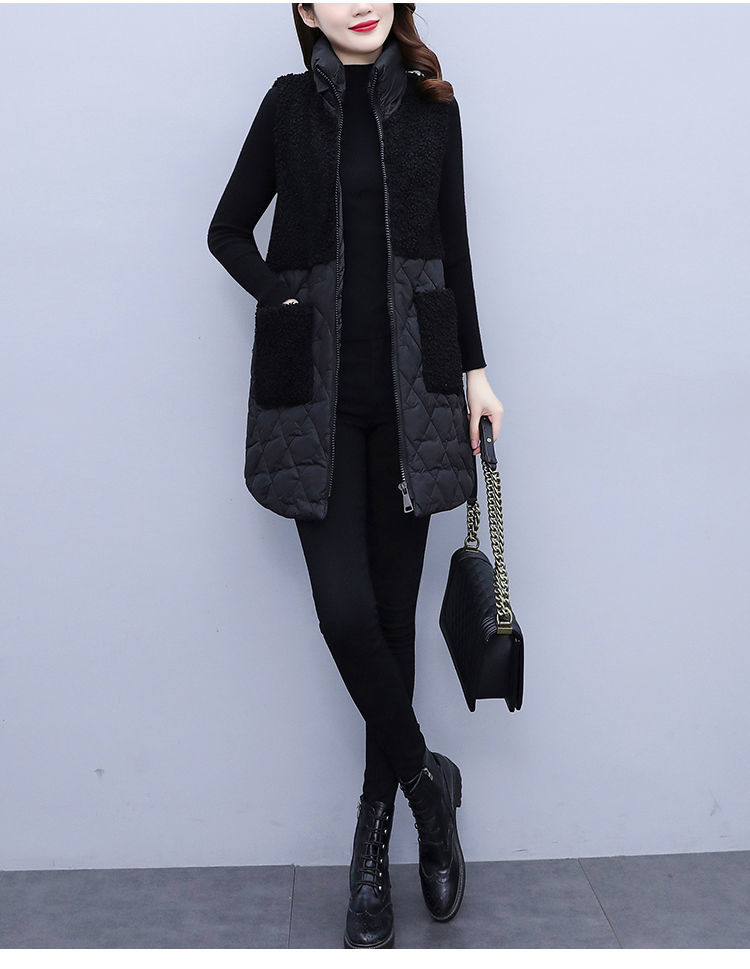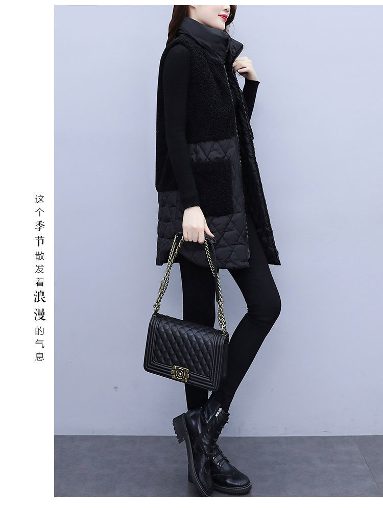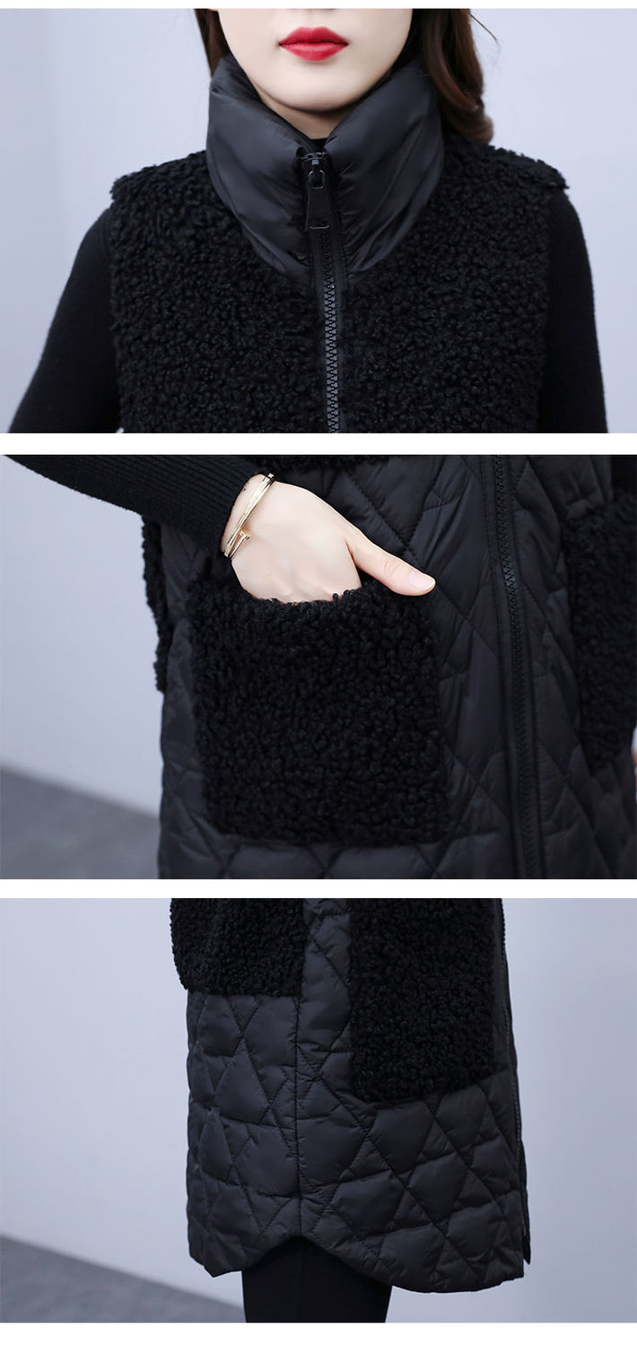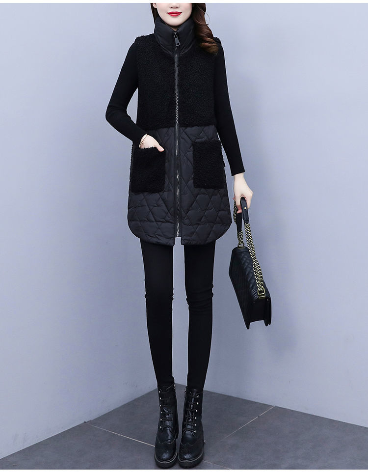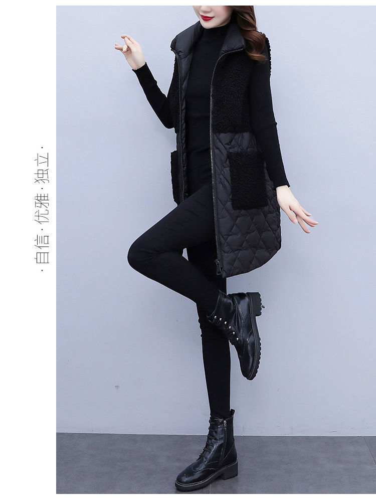 AA HL大码韩版时尚洋气仿羊羔毛拼接夹棉马甲