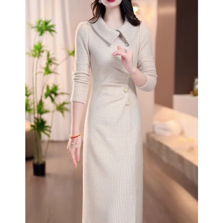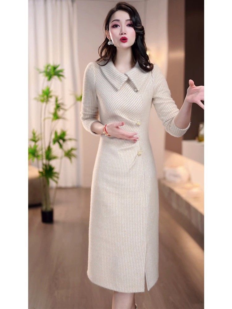 QYM C537洋气交叉翻领优雅大气收腰显瘦连衣裙 商品图0