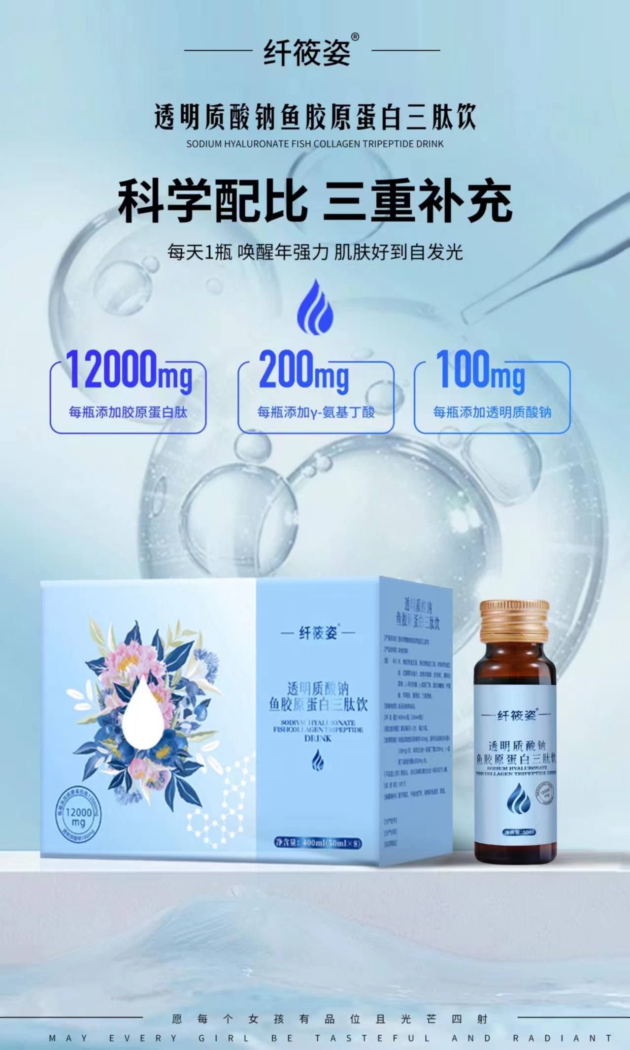 纤筱姿 透明质酸钠鱼胶原蛋白肽饮50ml*8支/盒