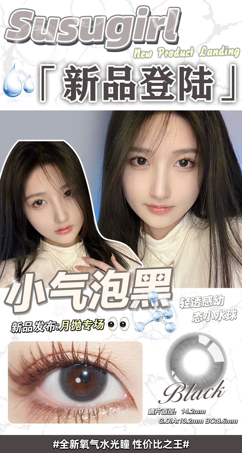 SUSUGIRL月抛隐形眼镜 小气泡黑 一副/2片 商品图0