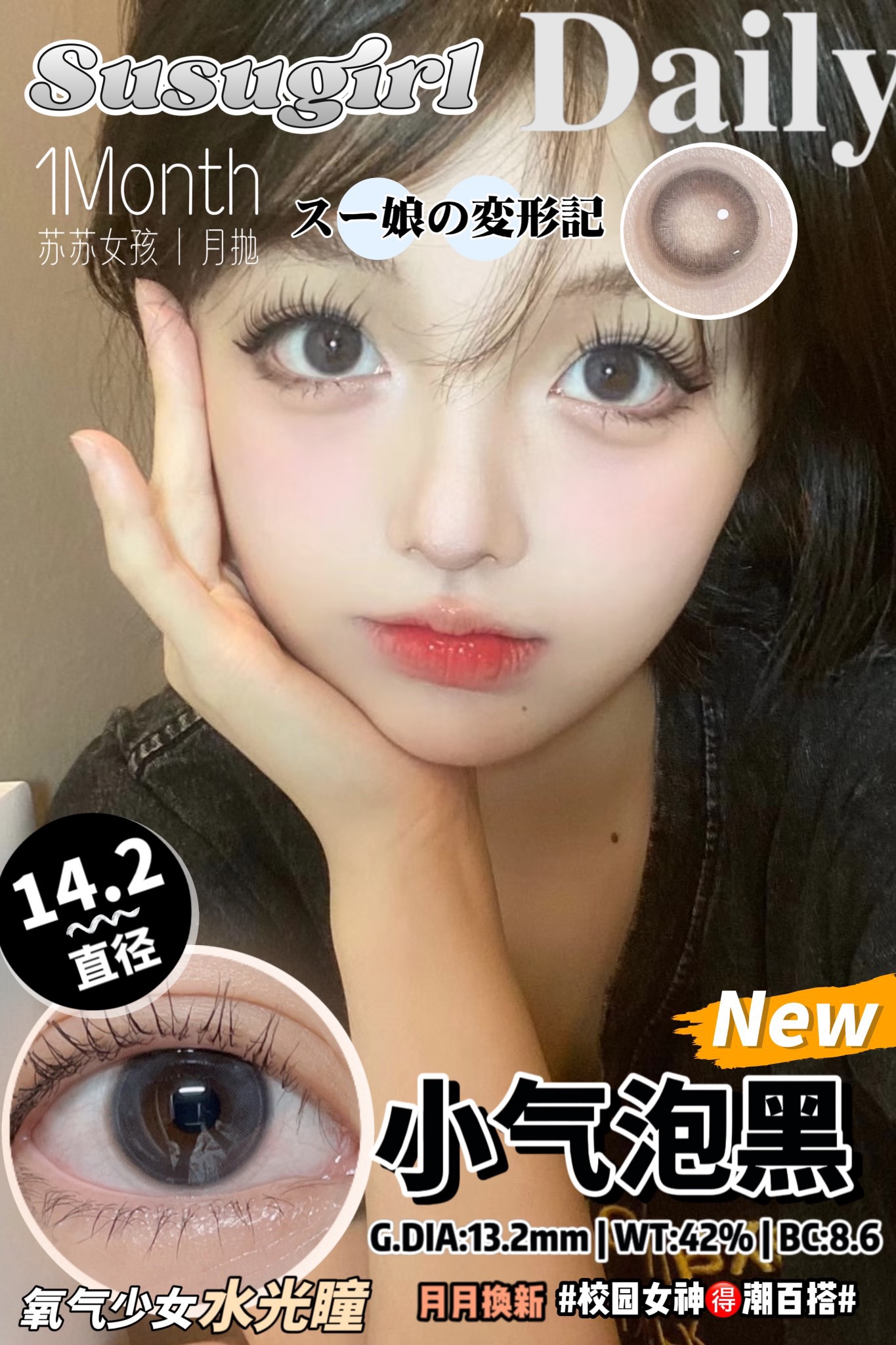 SUSUGIRL月抛隐形眼镜 小气泡黑 一副/2片