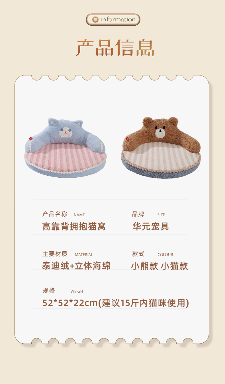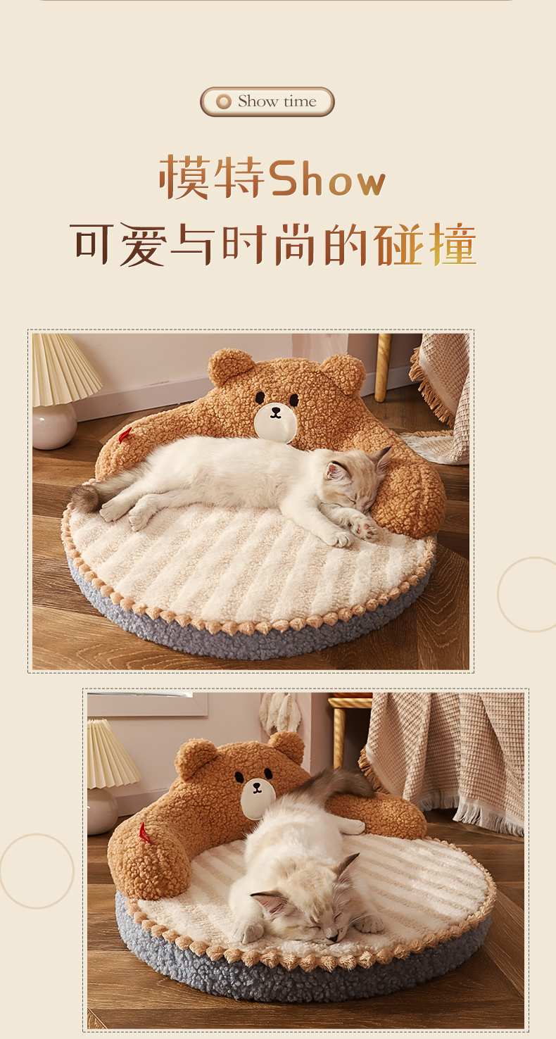 【温暖柔软有弹性❗️卡通刺绣精致工艺】猫窝四季通用猫床冬季宠物床猫咪睡觉的窝小猫用品冬天保暖猫垫子。jb
