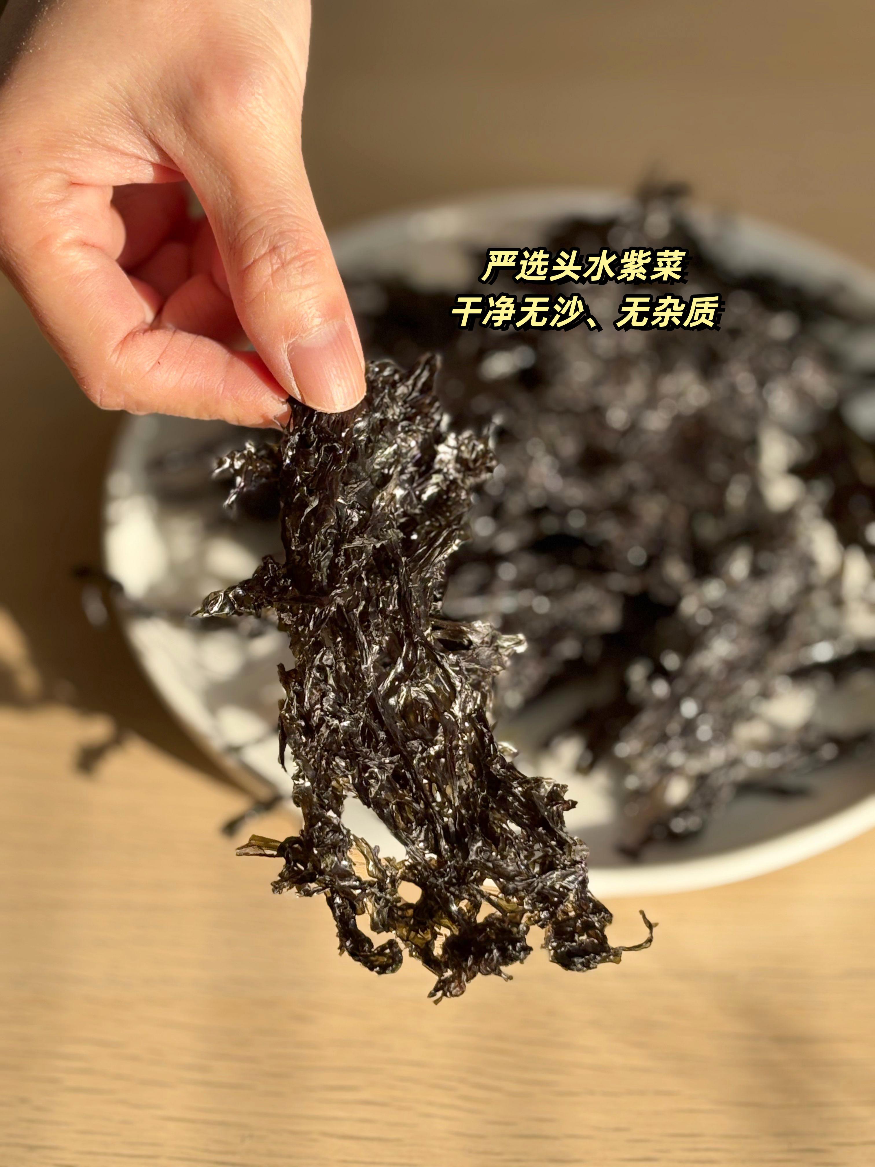 全新上线——蚂蚁岛原产地·头水紫菜! 只做头水!头水紫菜就是紫菜中的王者!免洗无沙、黝黑有光泽、叶片细腻,来自大海的鲜美~ ☑️0添加,100%天然风味,开水一冲就能吃 ☑️口感极好,细腻爽口、味美鲜香,还有弹性 ☑️又被称为“营养宝库”,有丰富蛋白质、矿物质、维生素与膳食纤维,是孩子、准妈妈、老人补铁补钙必选 ☑️可做汤、做菜、炒饭、下馄饨面条提鲜,紫菜虾皮汤、紫菜小馄饨、凉拌紫菜....