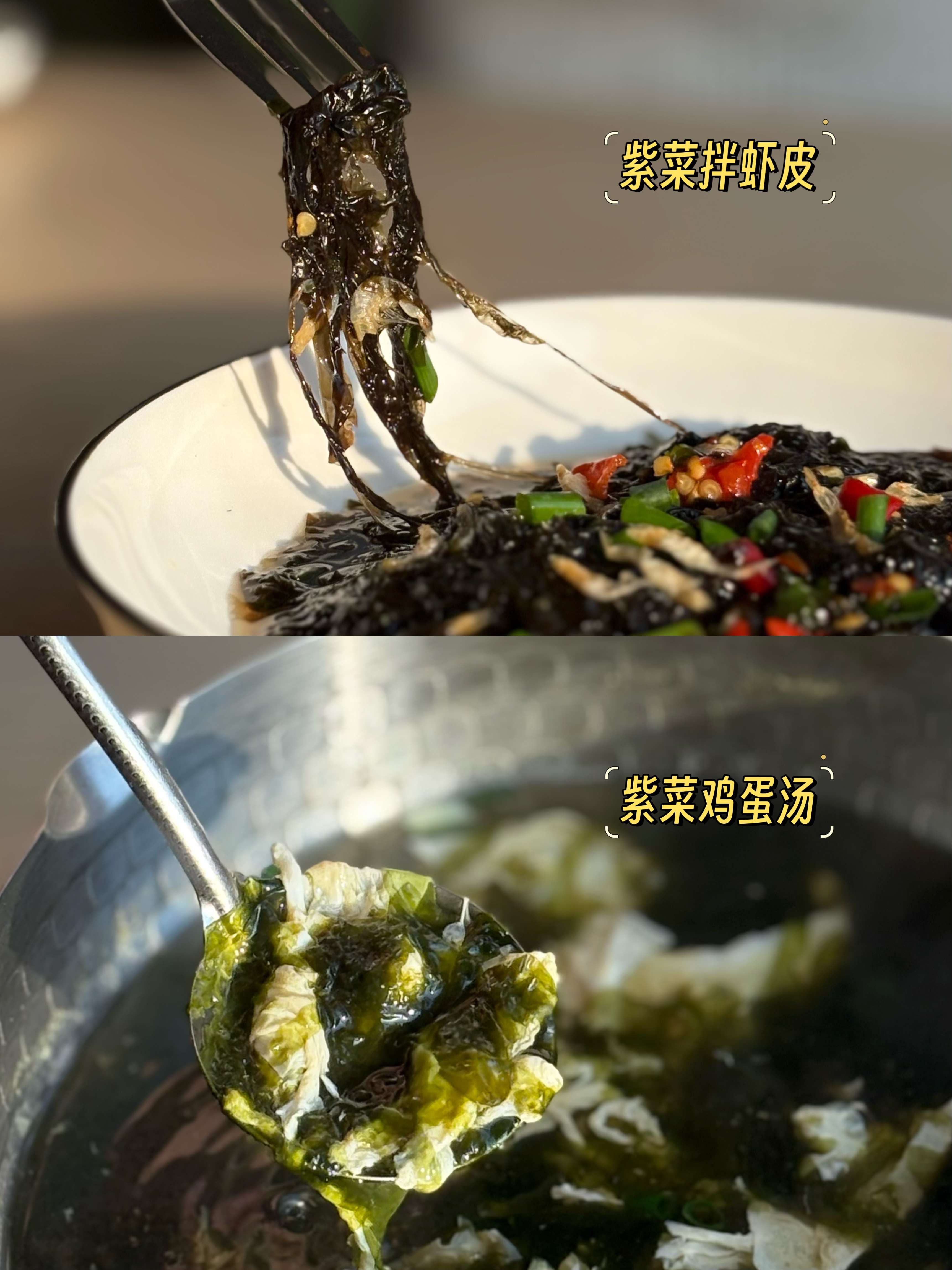 / 紫菜怎么吃? 紫菜食用方法多样,可做汤、包饭、凉拌、炒食。 1.最家常的就是如紫菜蛋花汤、紫菜虾皮汤,还有小时候经常吃的紫菜油条汤。 只需要把紫菜撕成小块,开水一冲,加点盐,根本不需要味精,汤鲜味美,营养丰富。 2.虾皮凉拌紫菜, 这道菜口感清爽,开胃解腻,紫菜在开水里过一下,滤掉水后加入虾皮、醋、一点点盐、白糖、生抽,搅拌均匀就可以了。 3.紫菜小馄饨/紫菜煮面条 头水紫菜不需要在开水里煮太久,所以只需要把紫菜放在碗里,再加入馄饨汤或面条即可。
