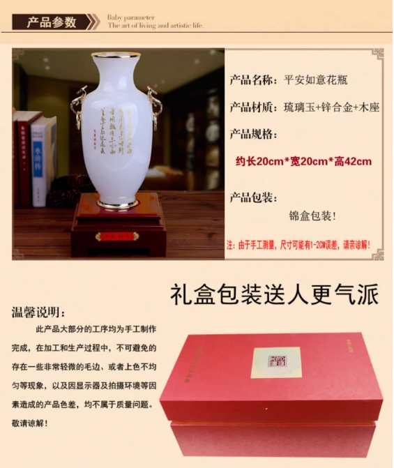 【彼达思】平安如意 琉璃花瓶摆件 客厅家居装饰品大新房婚房摆设品 礼品