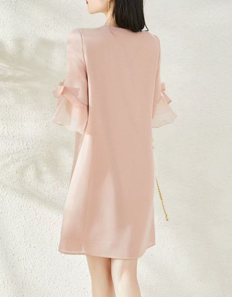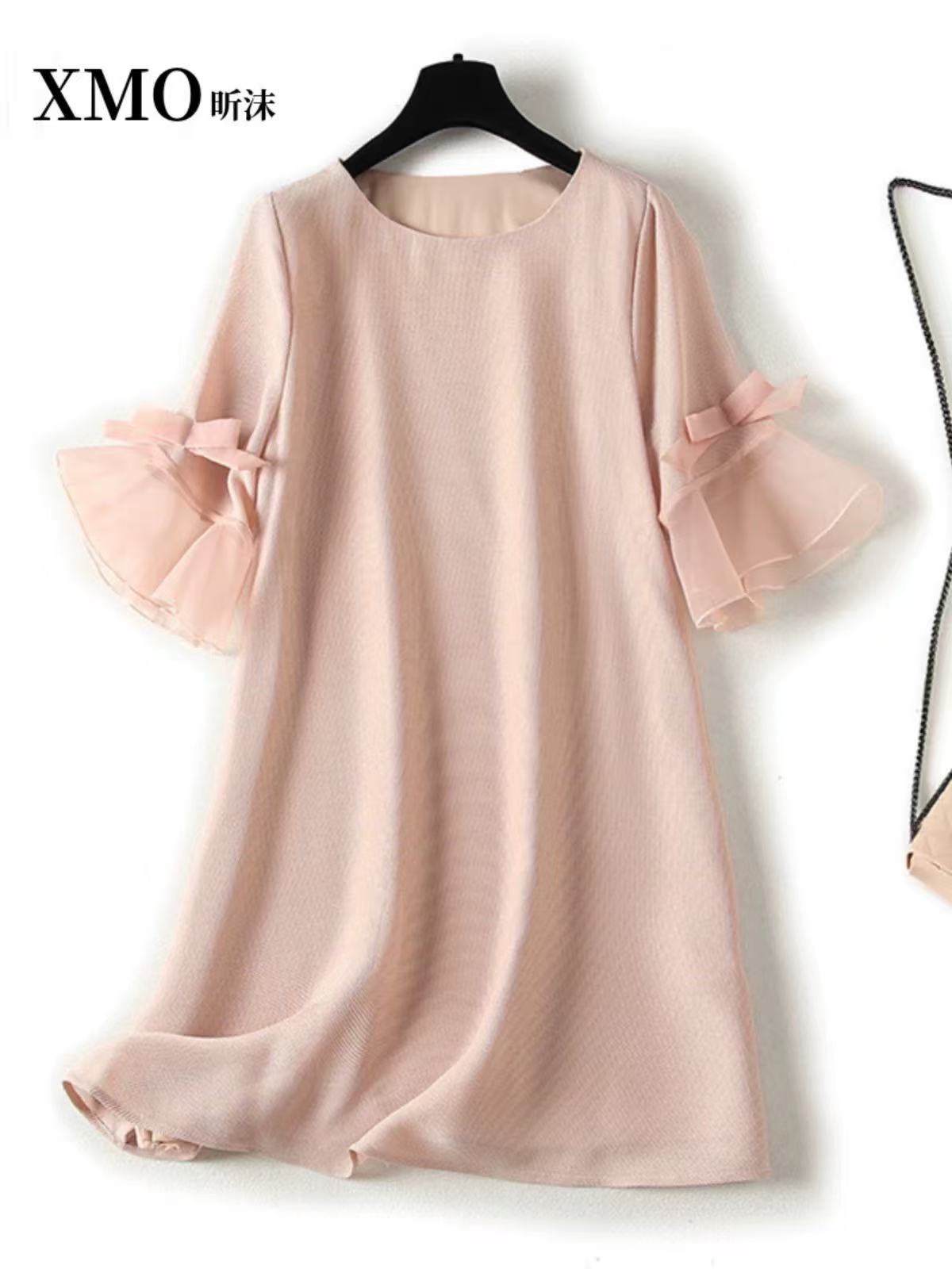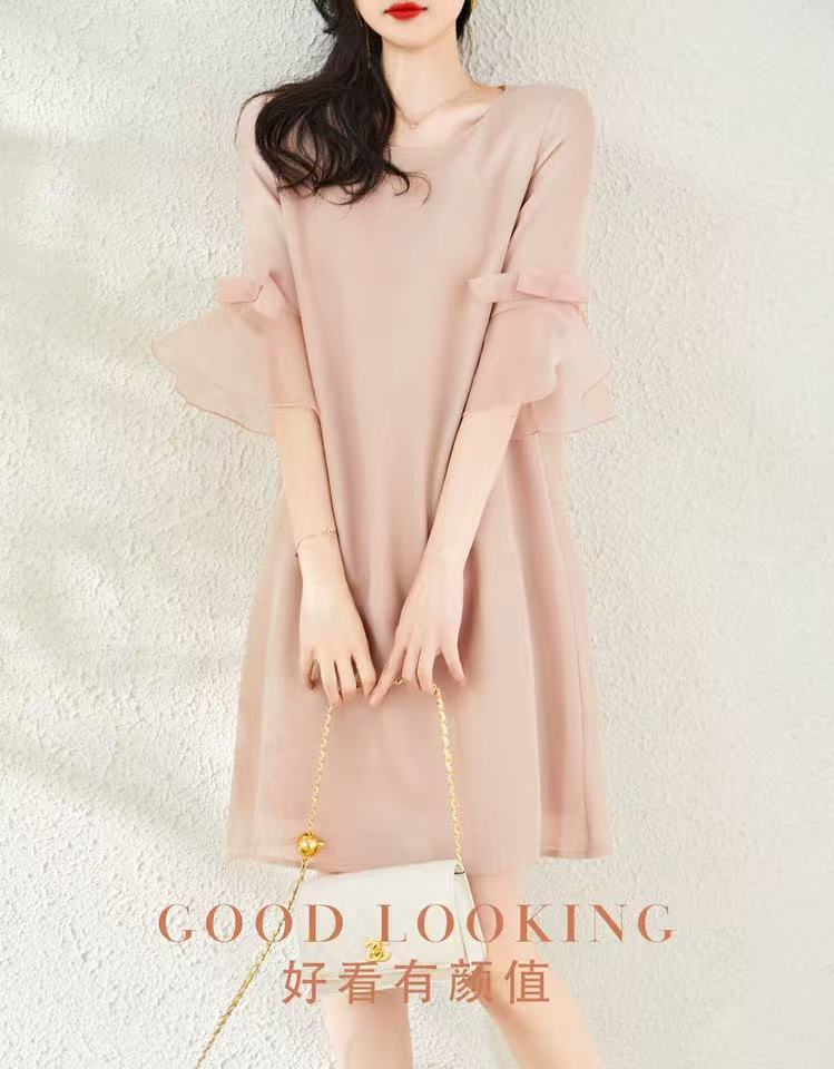 【MYBL】网纱蝴蝶结袖口中款连衣裙-喜出
