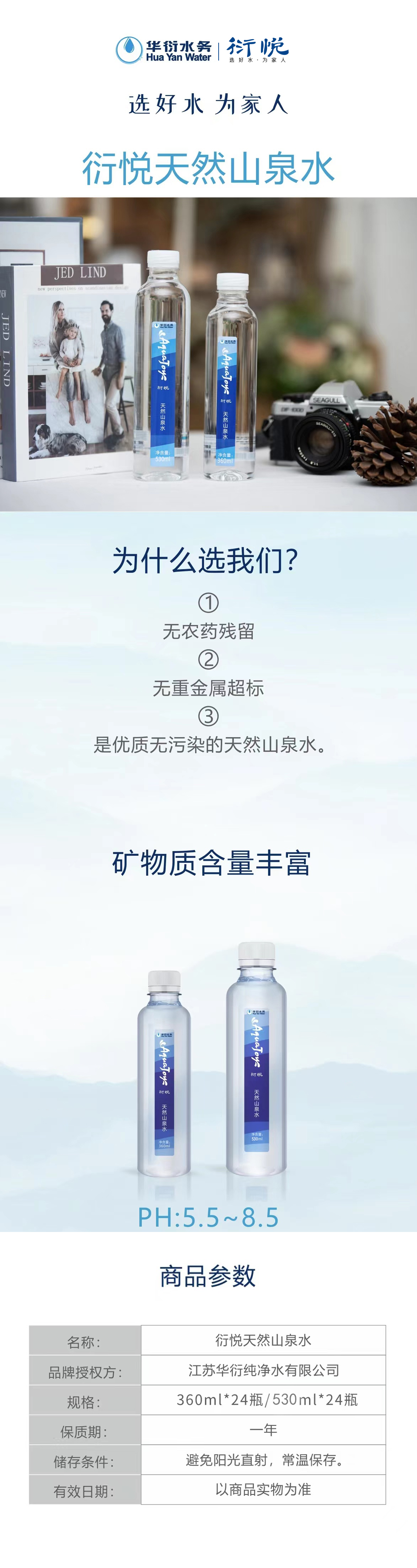 - 衍悦,是华衍水务立足主业,为吴江本地用户打造的高端包装饮用水品牌。