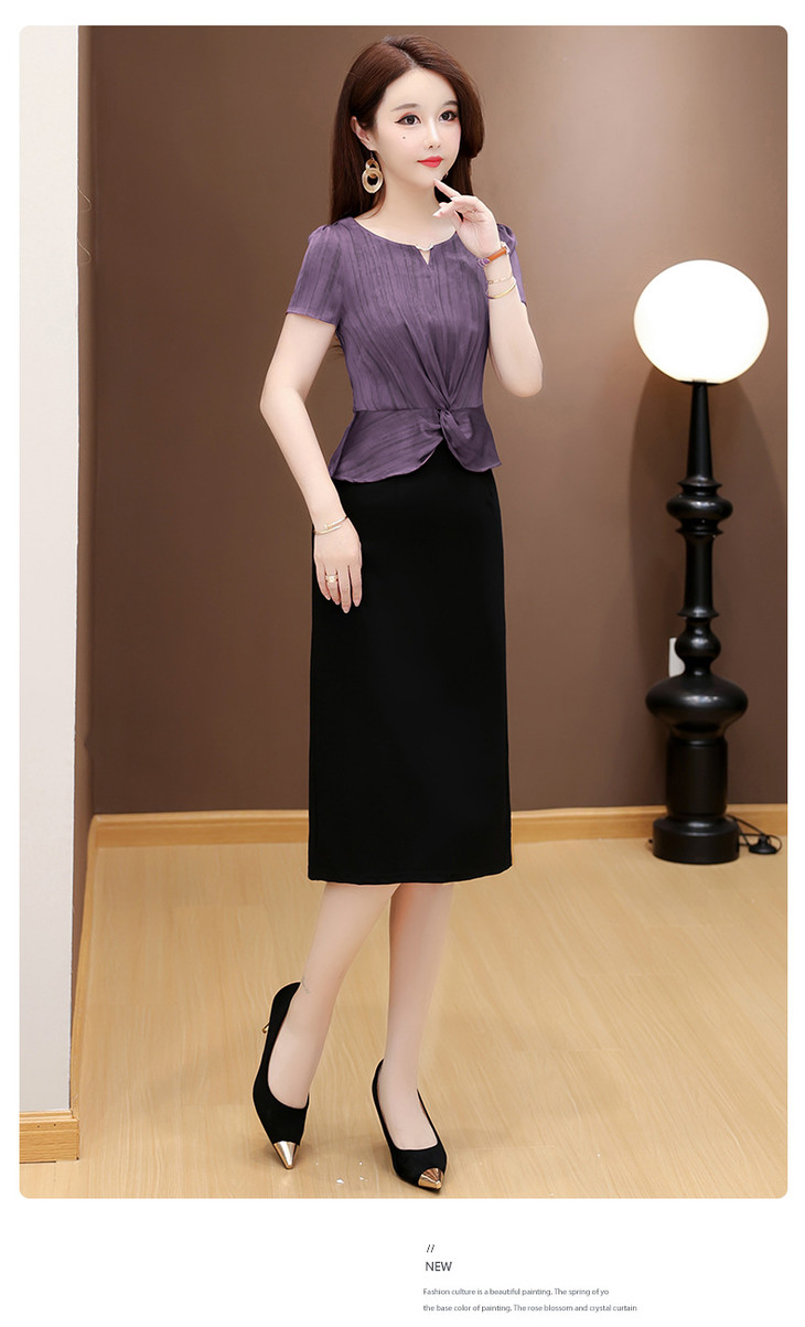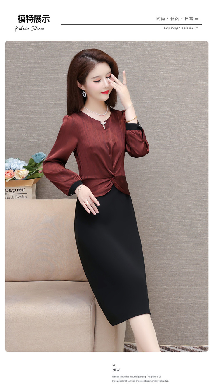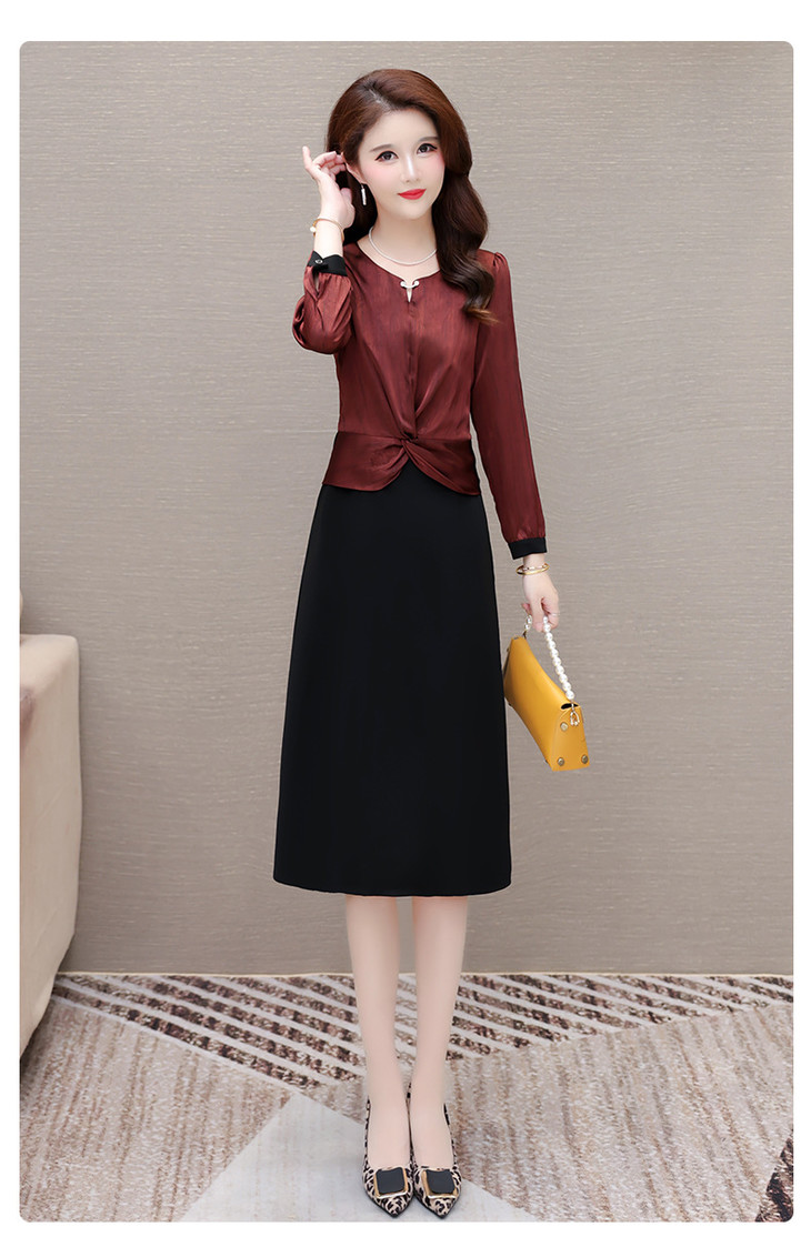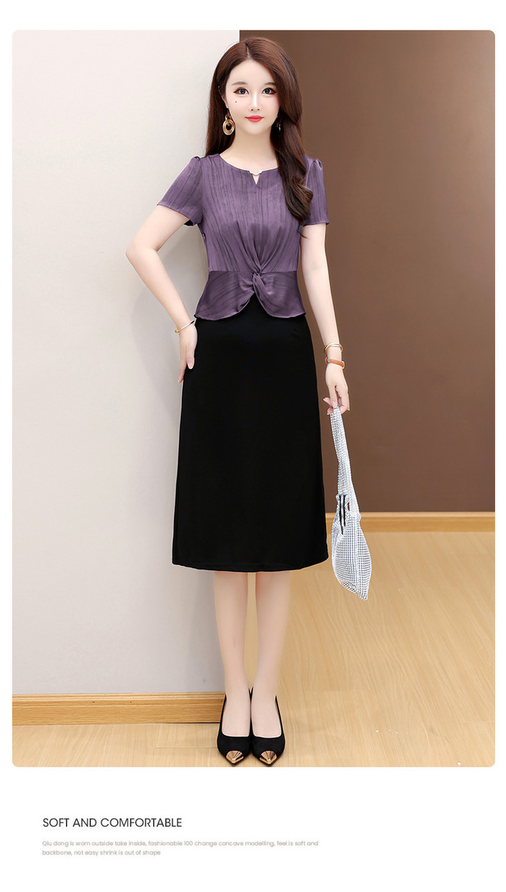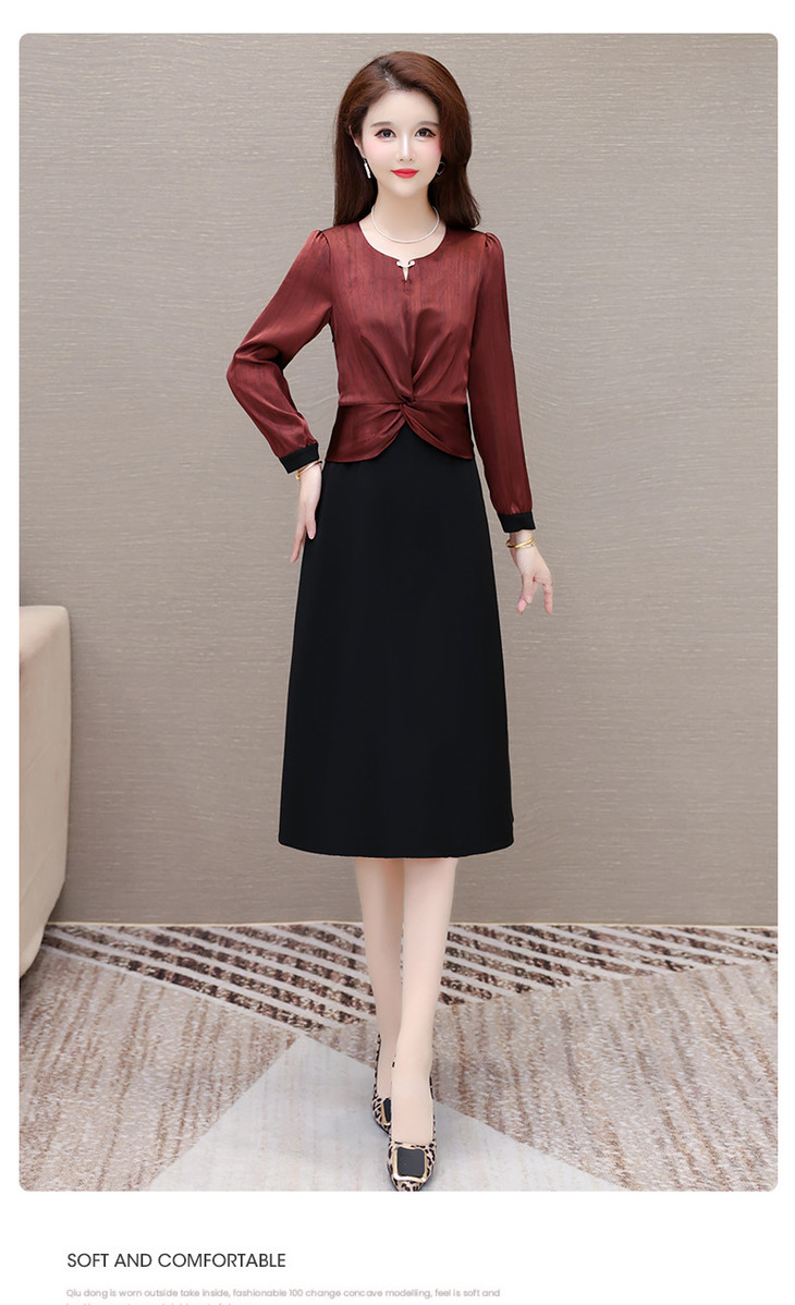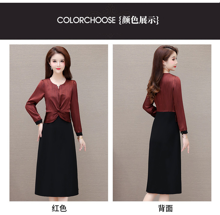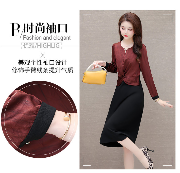 洋气大码假两件连衣裙气质修身中长款QK-YXJY-F182