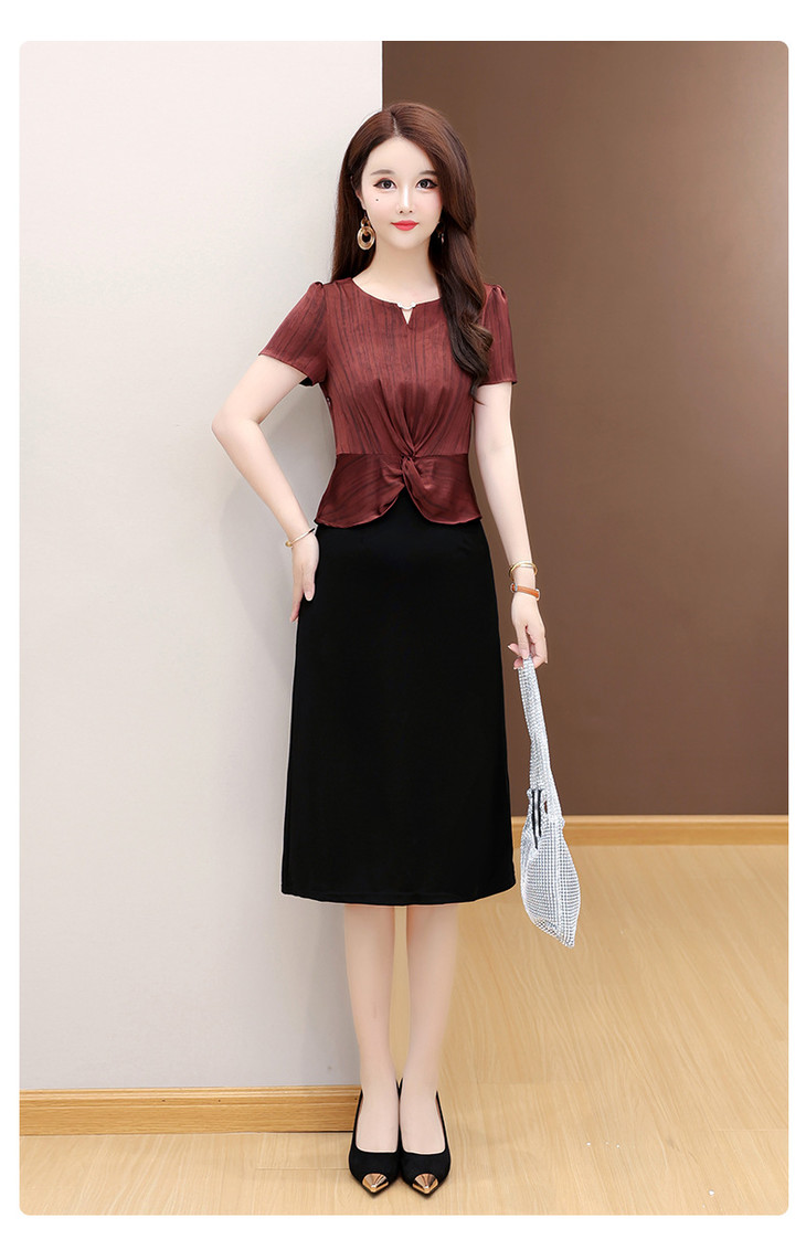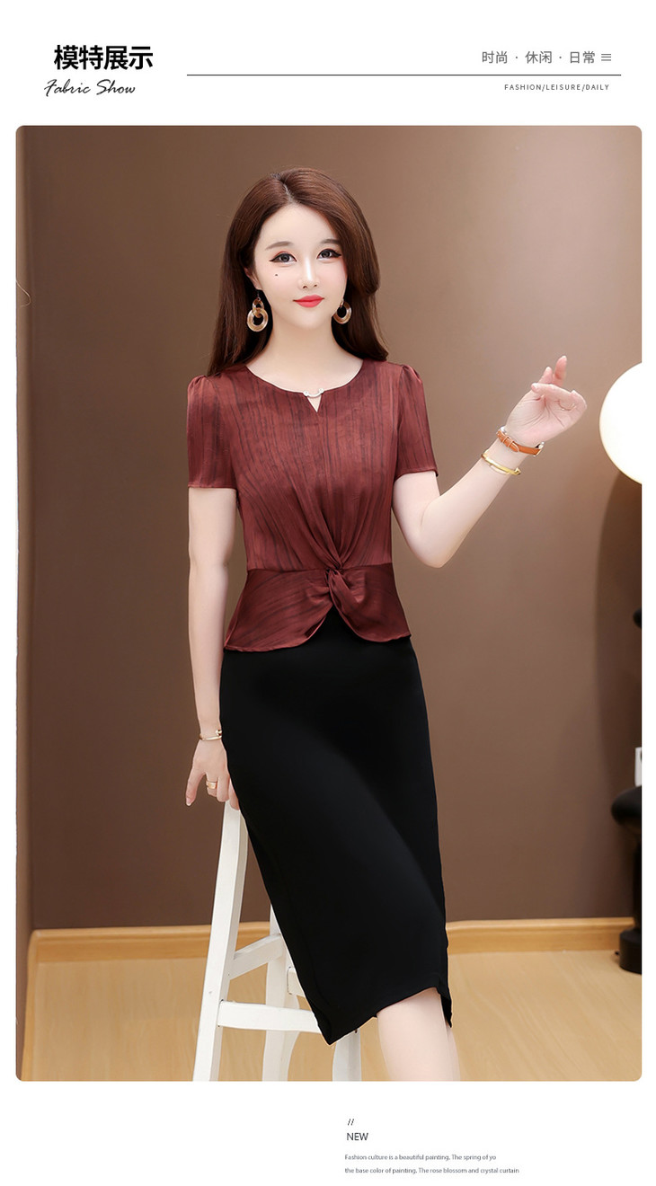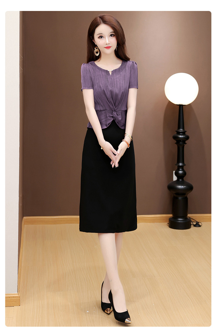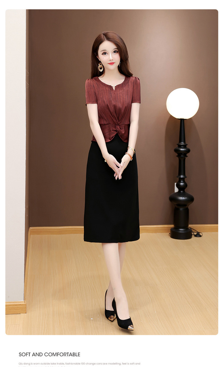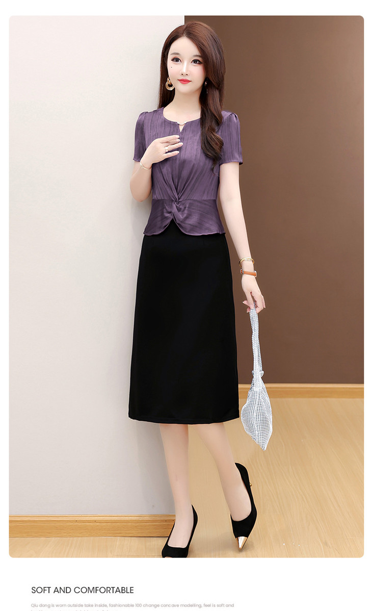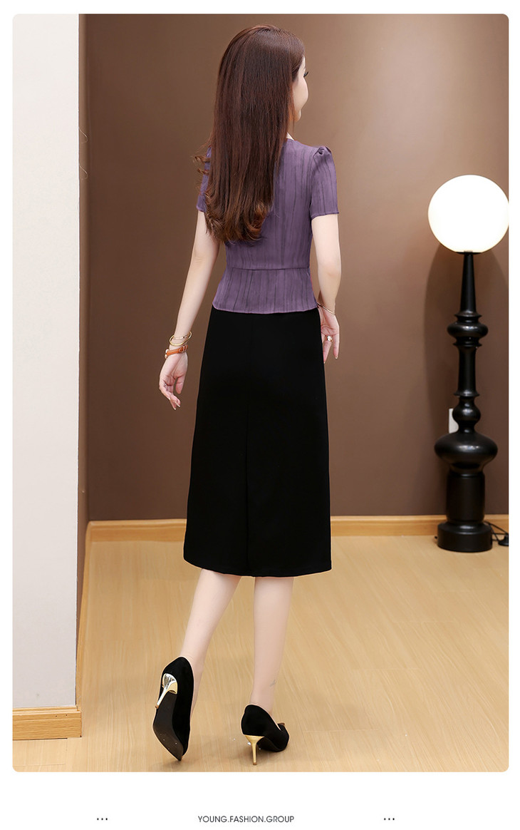洋气大码假两件连衣裙气质修身中长款QK-YXJY-F182