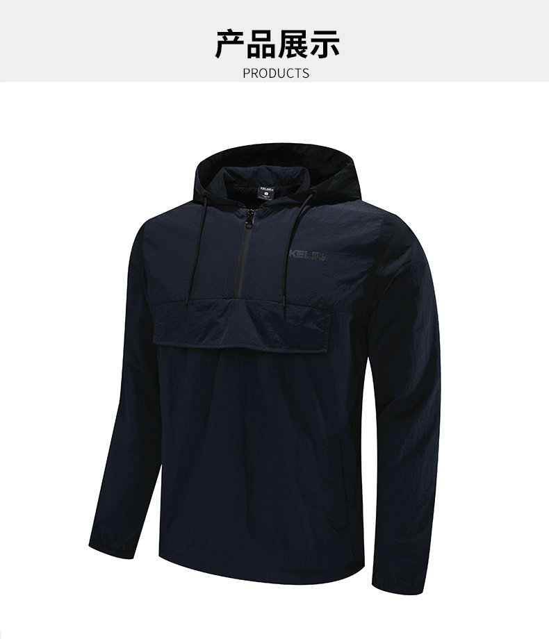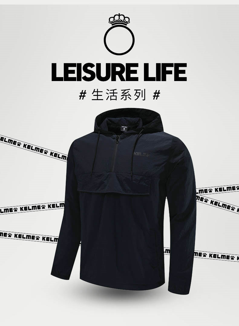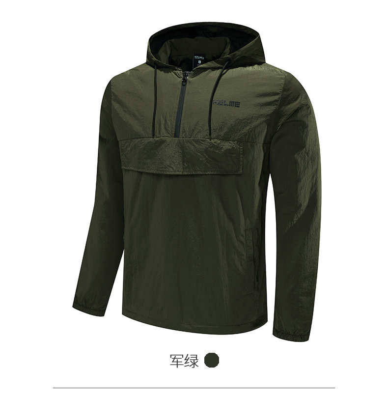 卡尔美 梭织运动外套男士半拉链连帽薄 跑步休闲套头衫