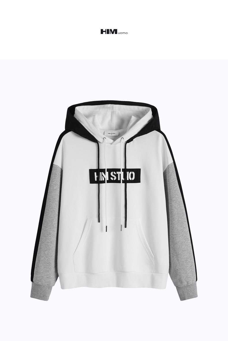 HIM漢崇 卫衣男连帽拼色双帽秋冬潮流运动个性慵懒风宽松帽衫