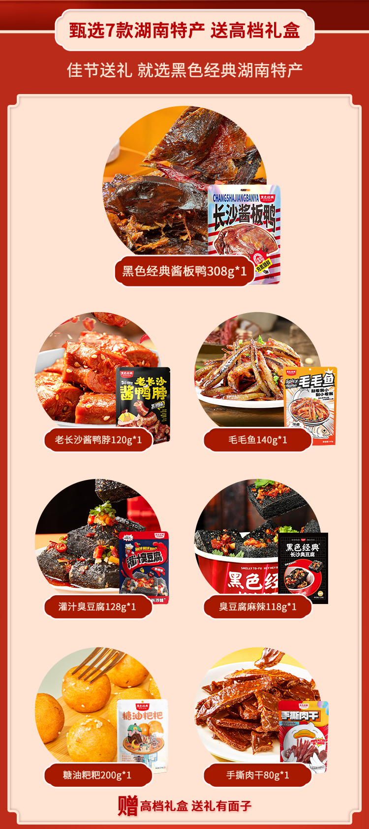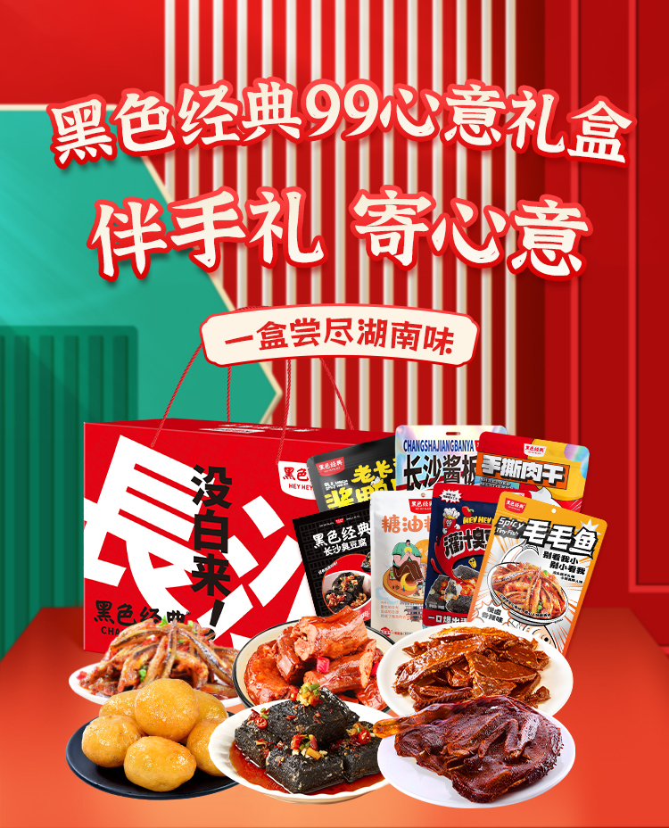 【轻量礼盒】黑色经典99心意礼盒 精选7款湖南特产 有整只酱板鸭