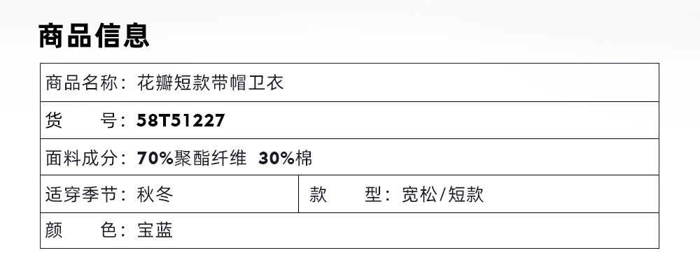 TITIKA花瓣短款带帽卫衣秋冬款女户外休闲长袖套头外套51227