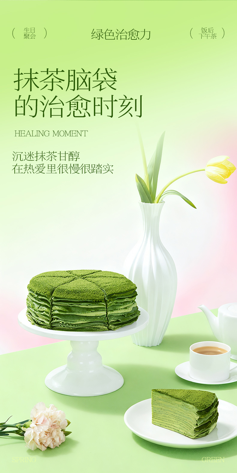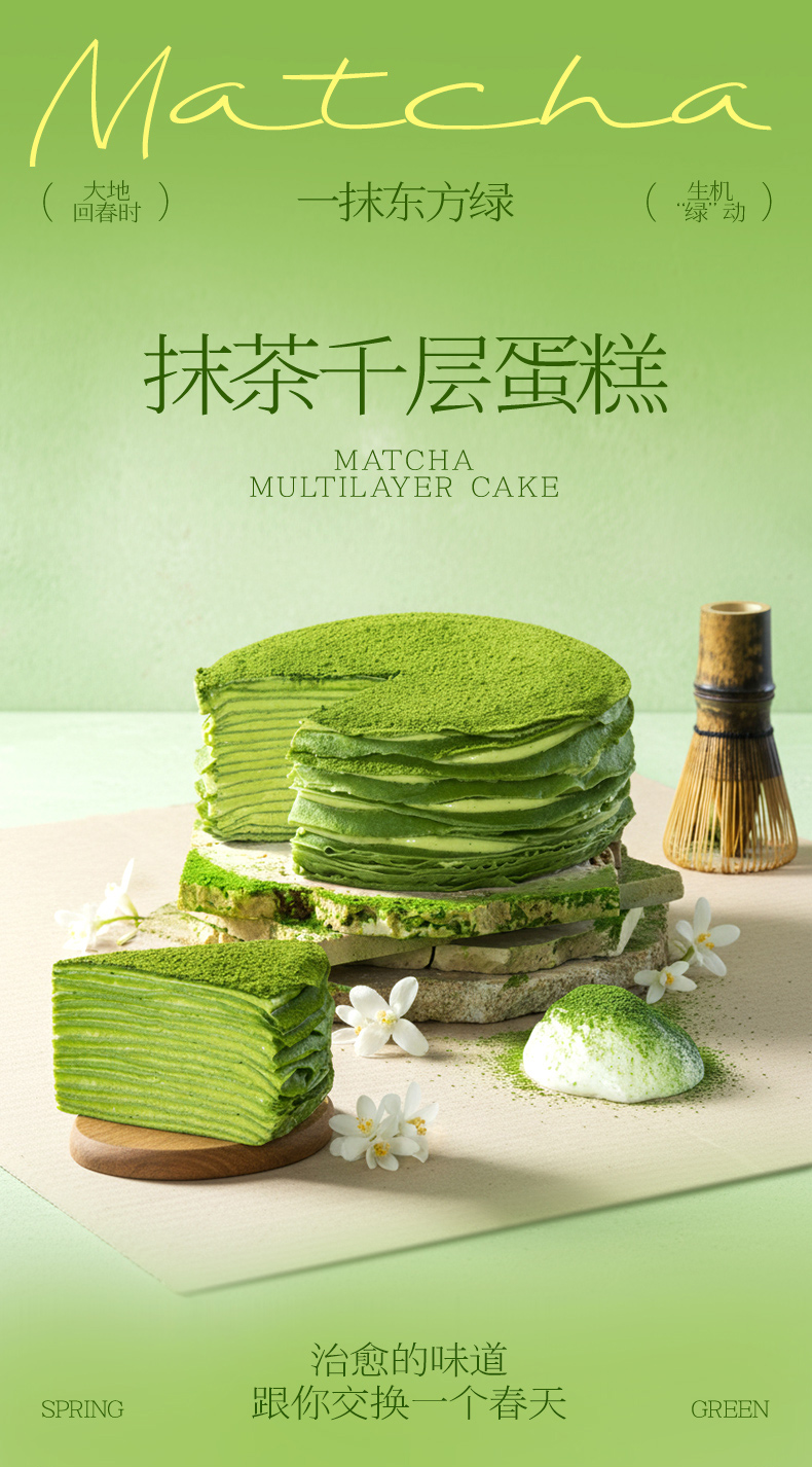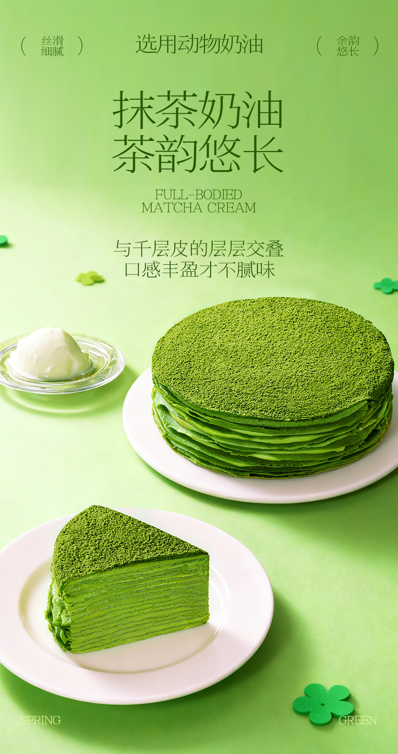 【榴芒一刻】青涩自然抹茶千层蛋糕420g