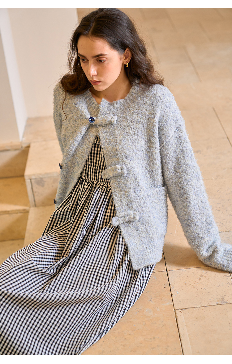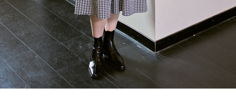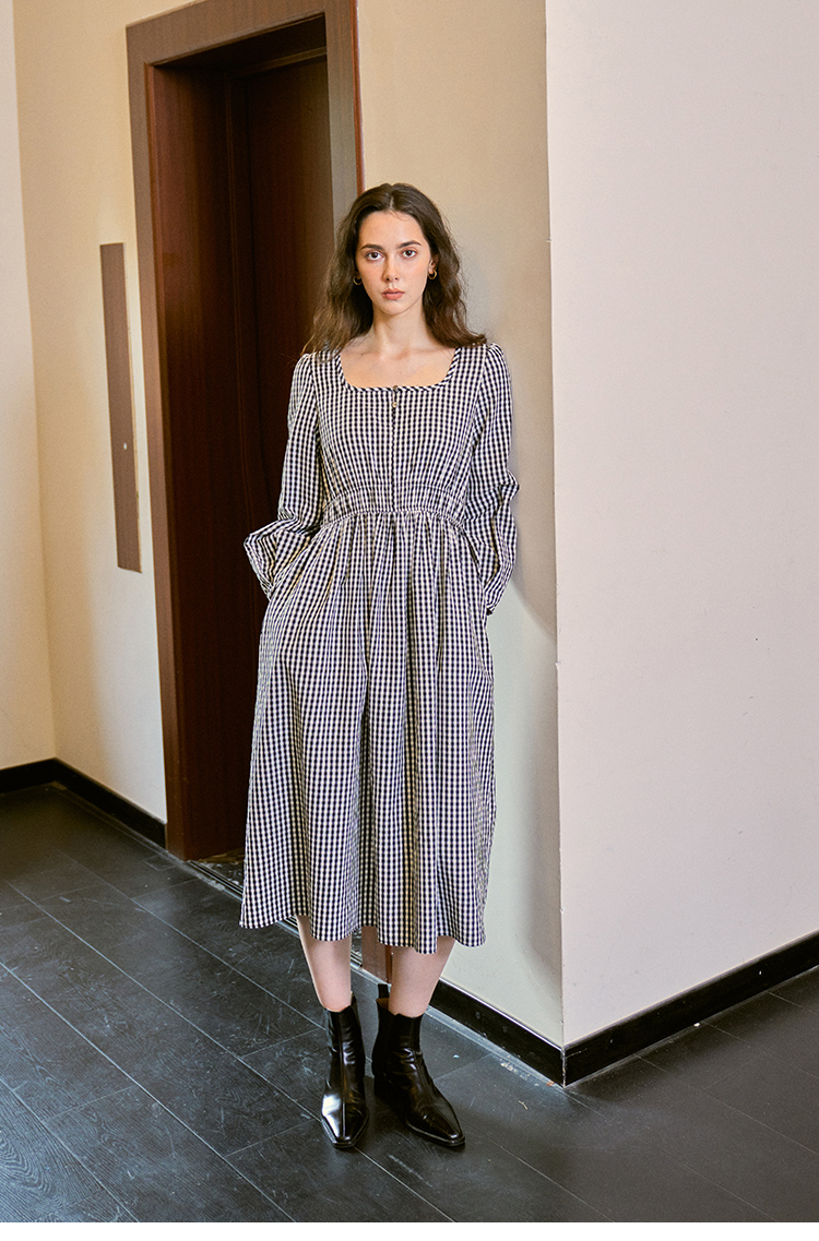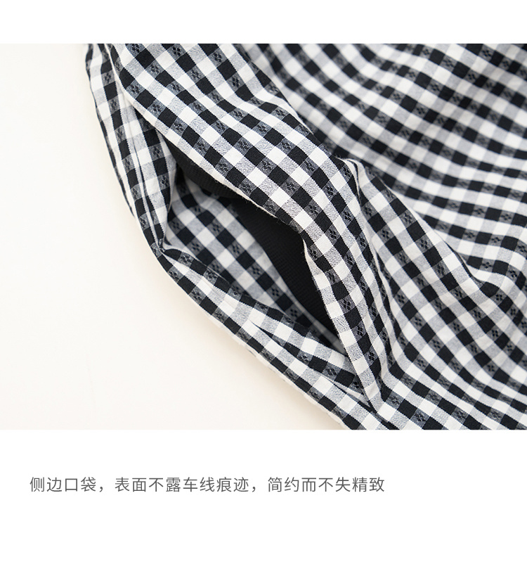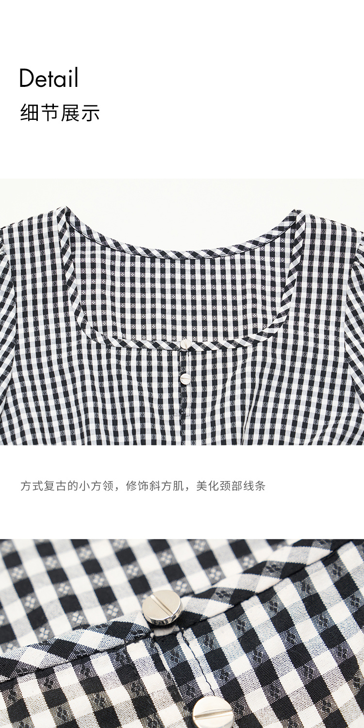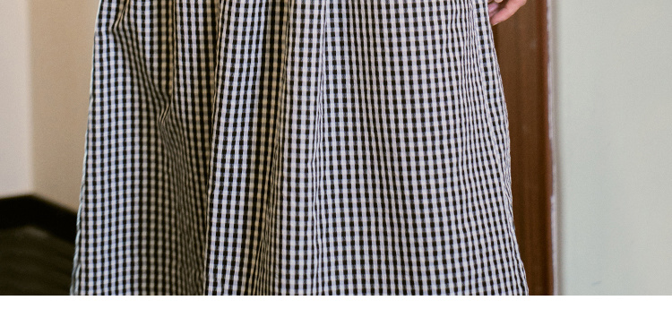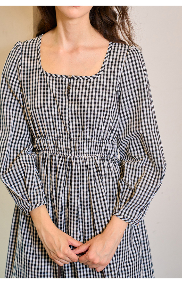 HeyDress复古黑白格连衣裙女秋季抽褶收腰设计法式浪漫长袖裙子