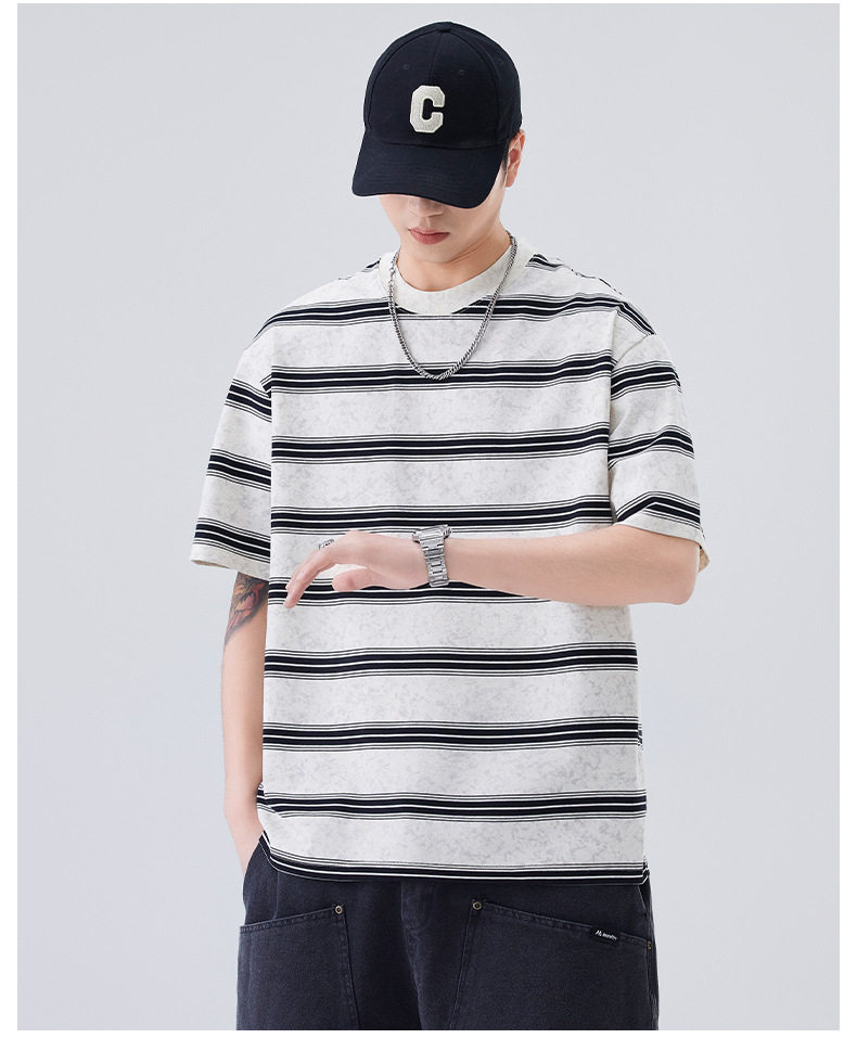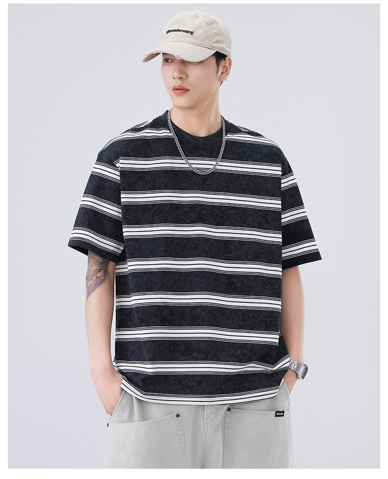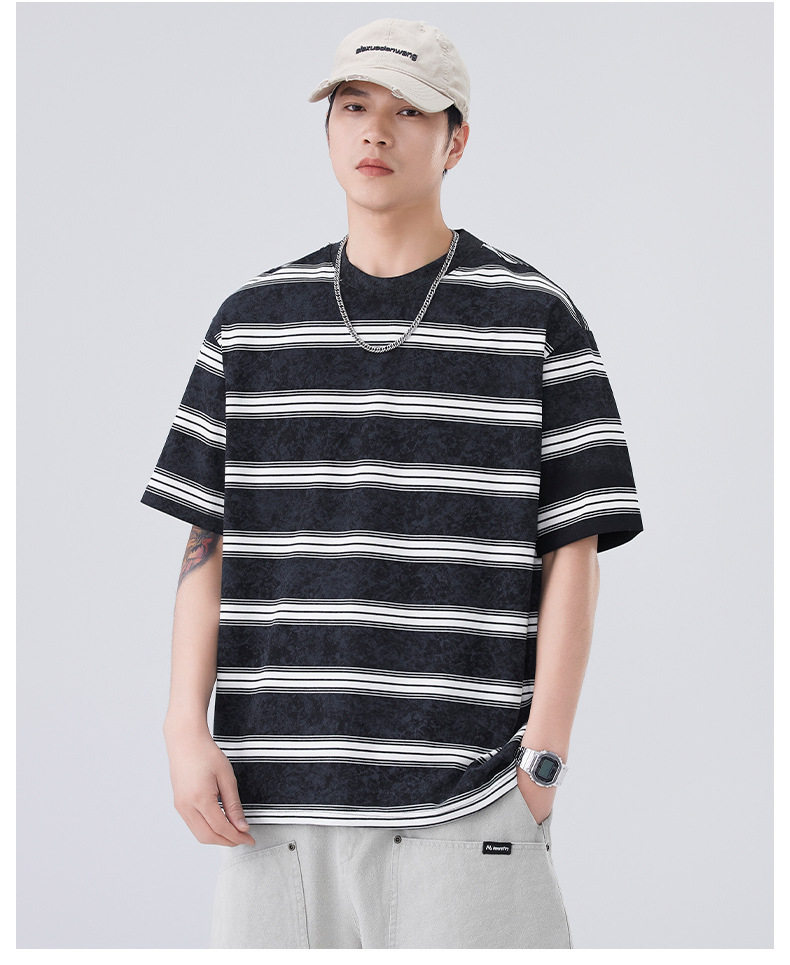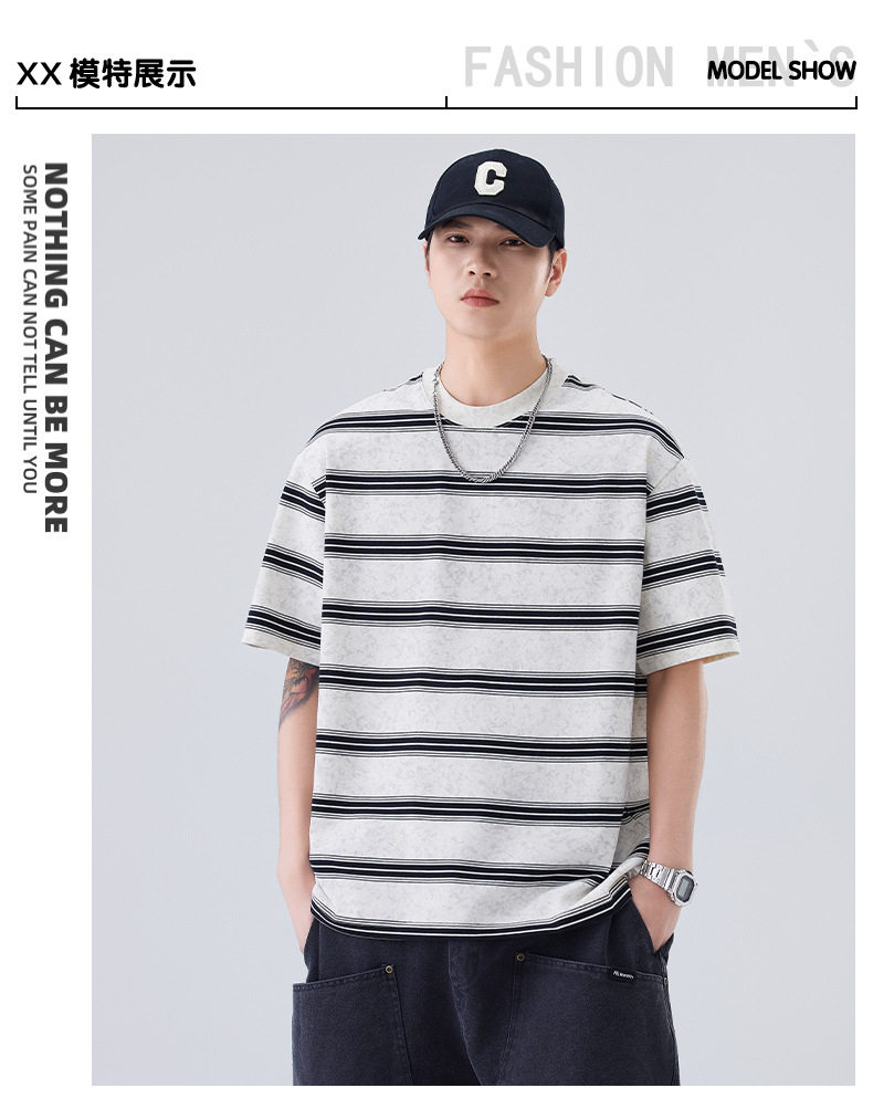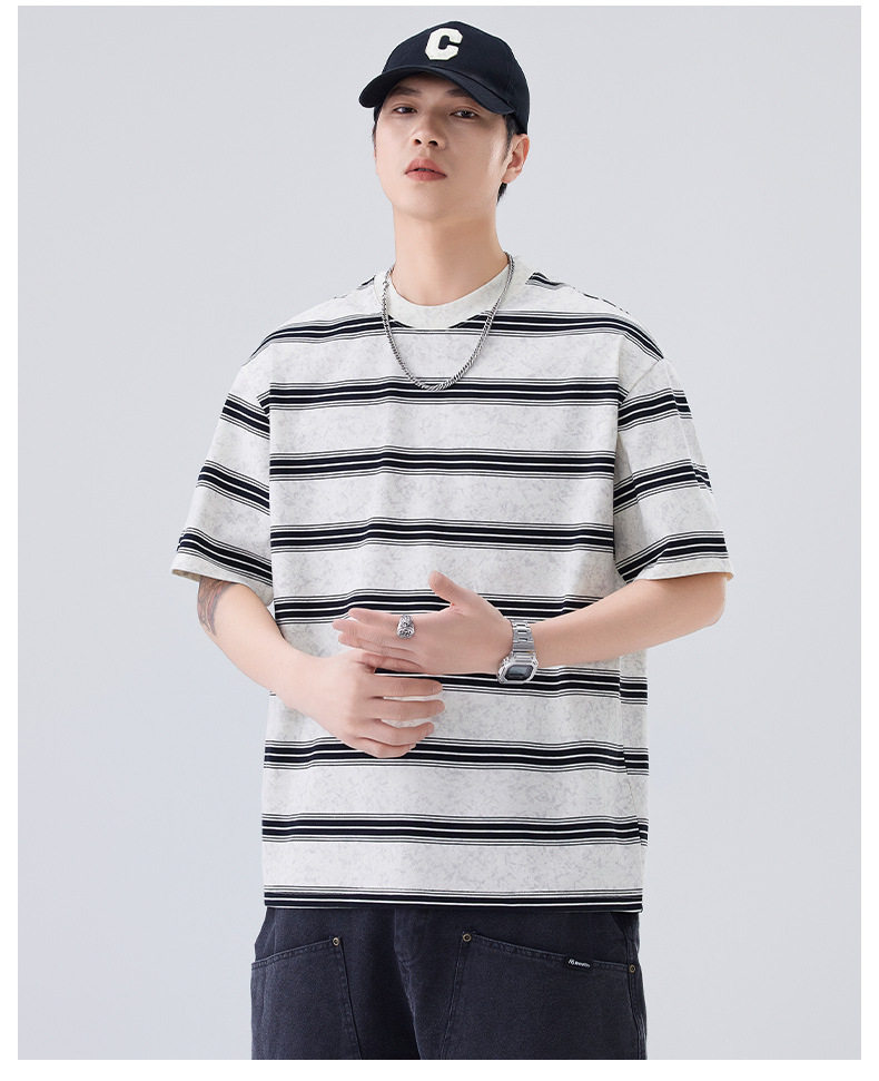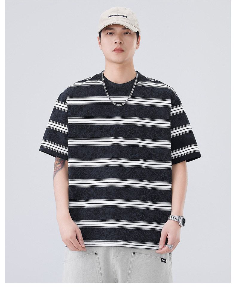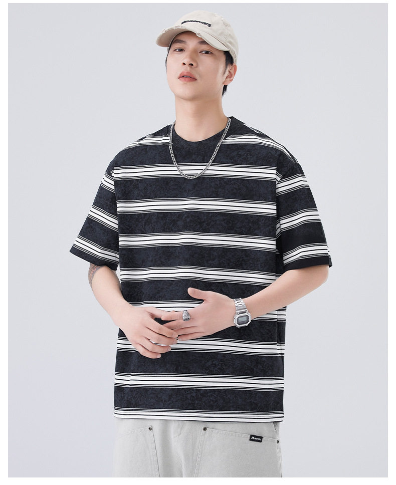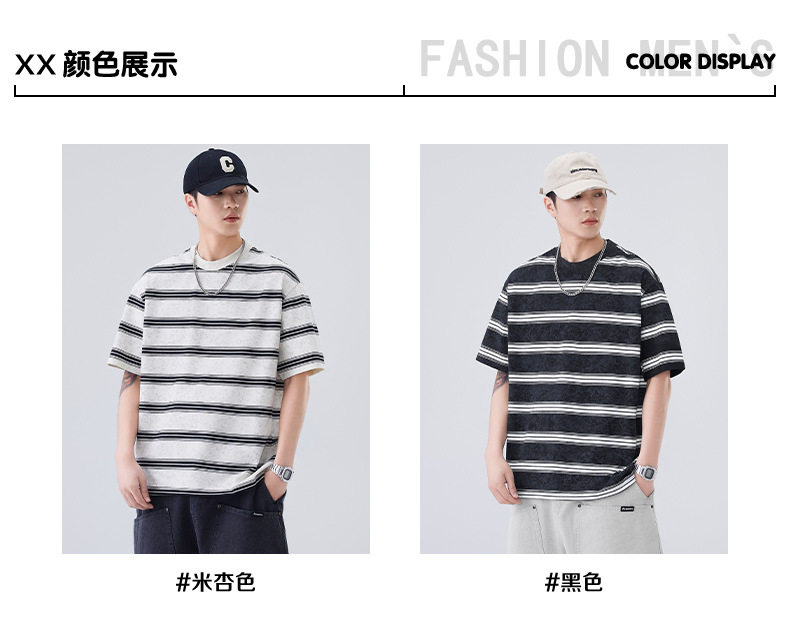 夏季新款短袖T恤宽松条纹圆领情侣海魂衫半袖t恤 AY-D3603