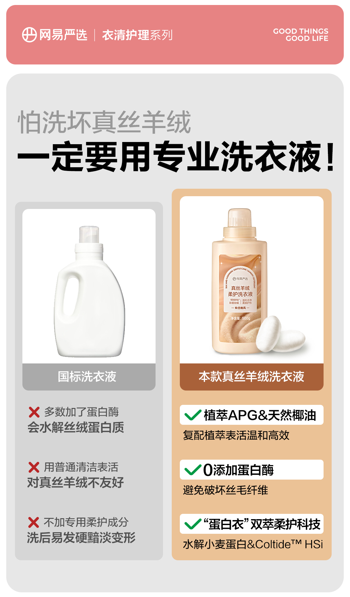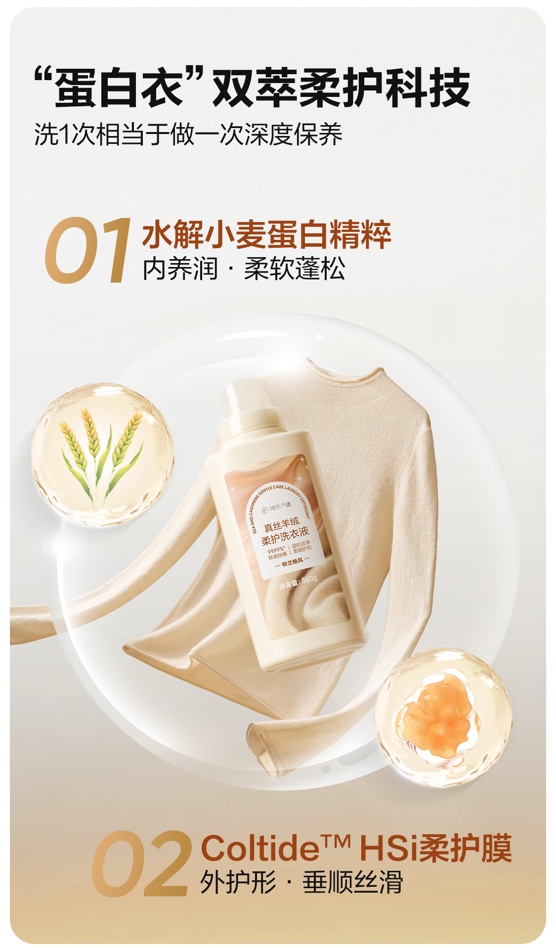 网易严选 温和洁净,柔顺护形 真丝羊绒羊毛柔护洗衣液