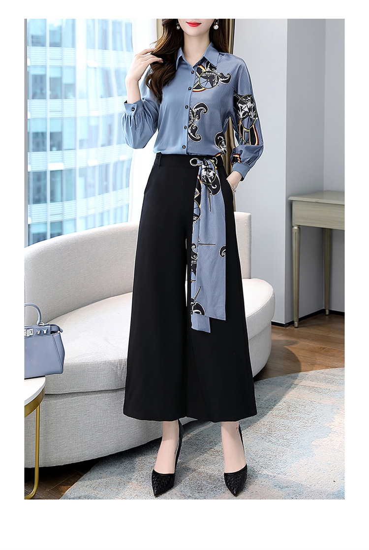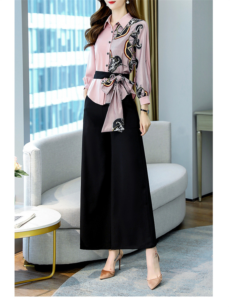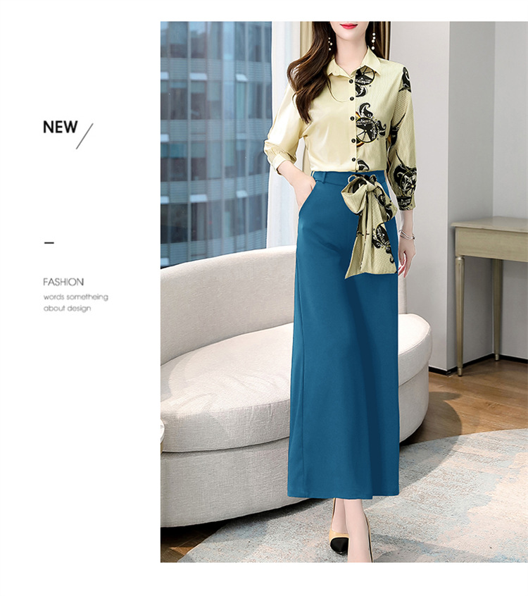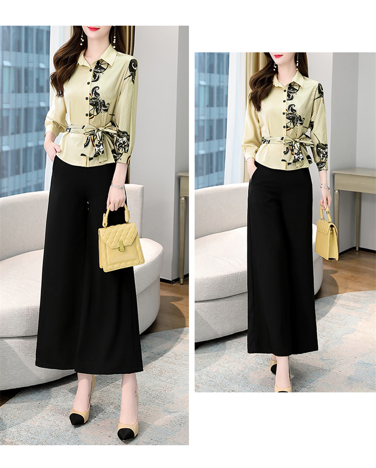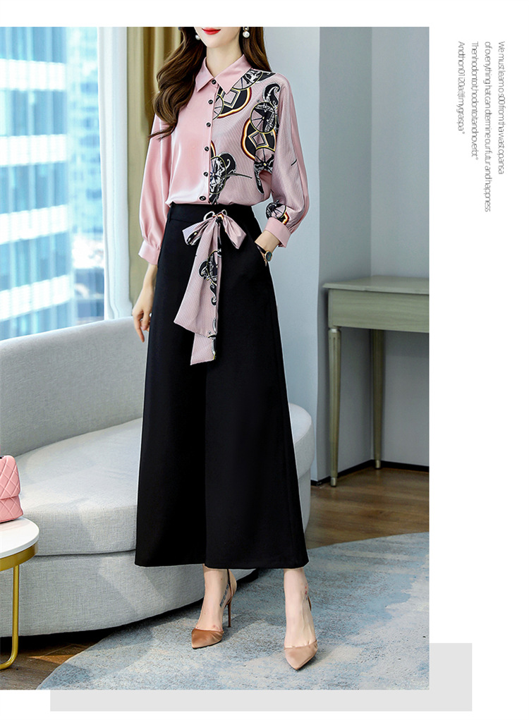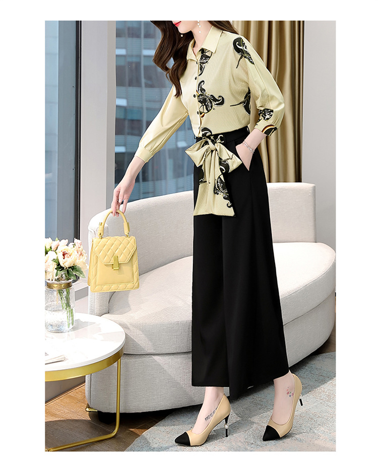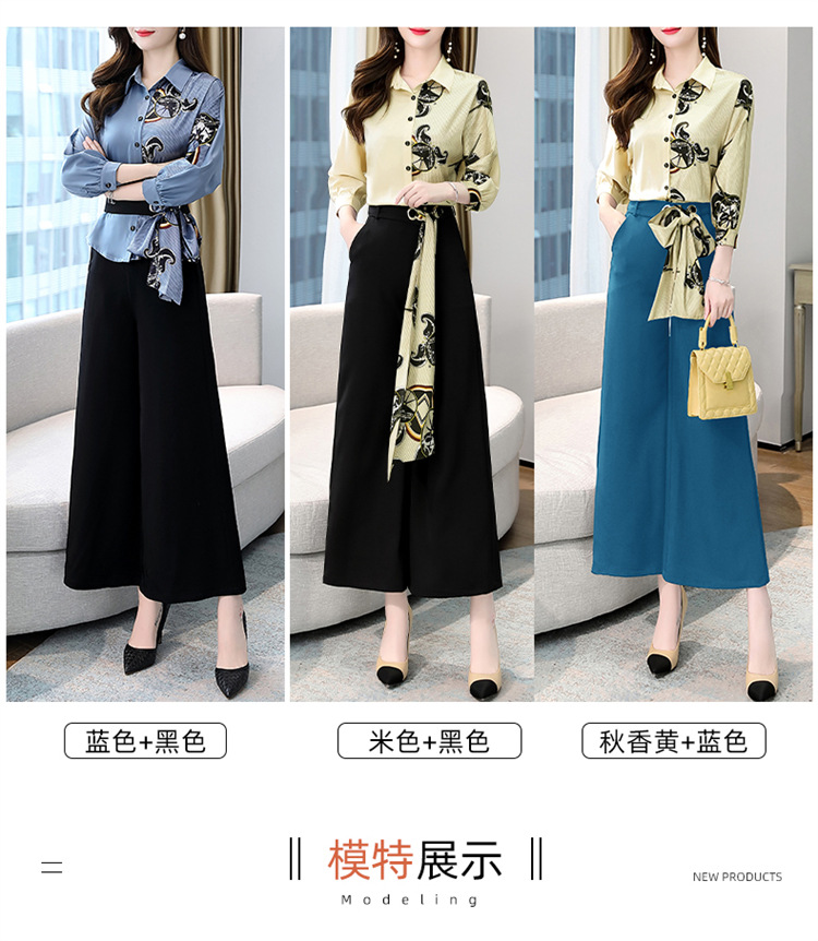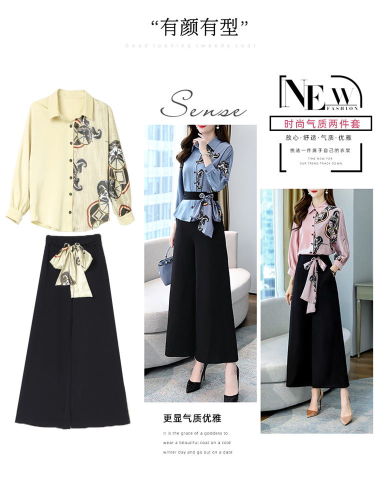 WHA2219大气阔腿裤套装女2025秋季新款时尚典雅气质名媛风两件套裤