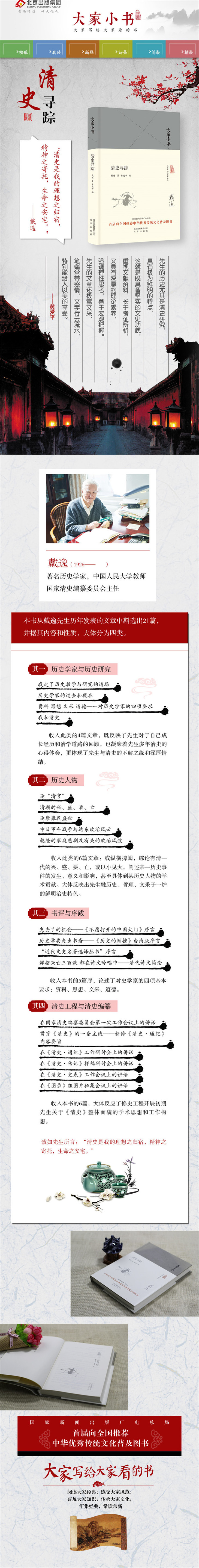本书是著名历史学家、国家清史编纂委员会主任戴逸先生的文章选辑。本书从先生历年发表的文章中斟选出21篇,并据其内容和性质,分为四类:一是历史学家与历史研究,既反映了先生对自己成长历程和治学道路的回顾,也凝聚着先生多年治史的心得体会,更体现了先生与清史的不解之缘和深厚情结;二是史事与人物,或纵横捭阖,综论有清一代的兴、盛、衰、亡,或以小见大,阐述某一历史事件的发生、意义和影响,甚至具体到某一历史人物的学术贡献,虽然由于篇幅所限,先生更多研精覃思的学术论文未能展现于此,但也大体反映出先生融历史、哲理、文采于一炉的鲜明治史特色;三是书评与序跋,虽系命题作文,但都能写出新意,提出创见,给人以思想的启迪;四是清史工程与清史编纂,反映了修史工程开展初期先生关于《清史》整体面貌的学术思考和工作构想。