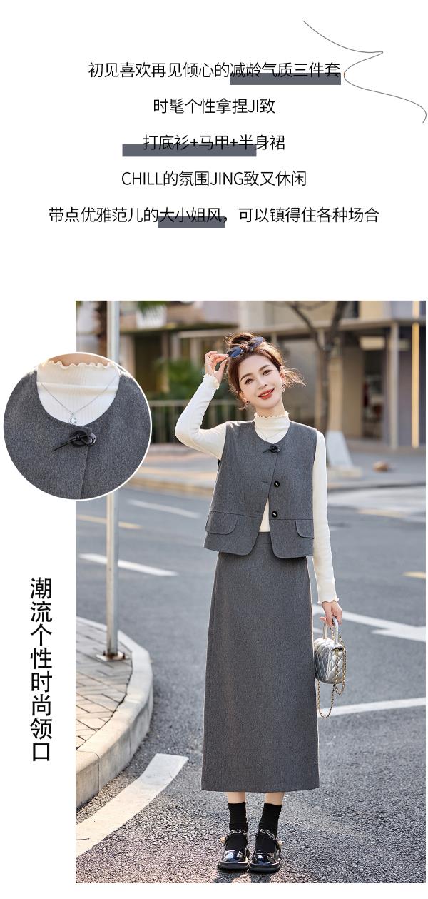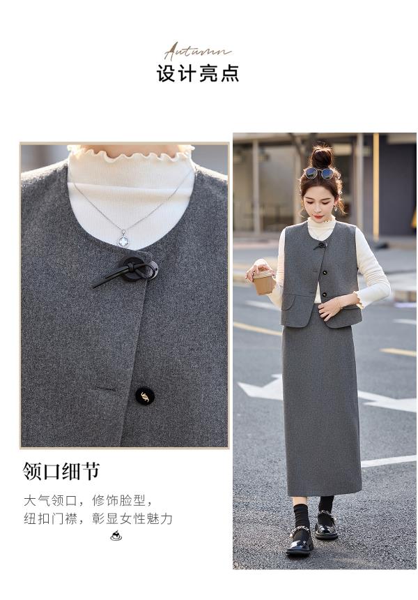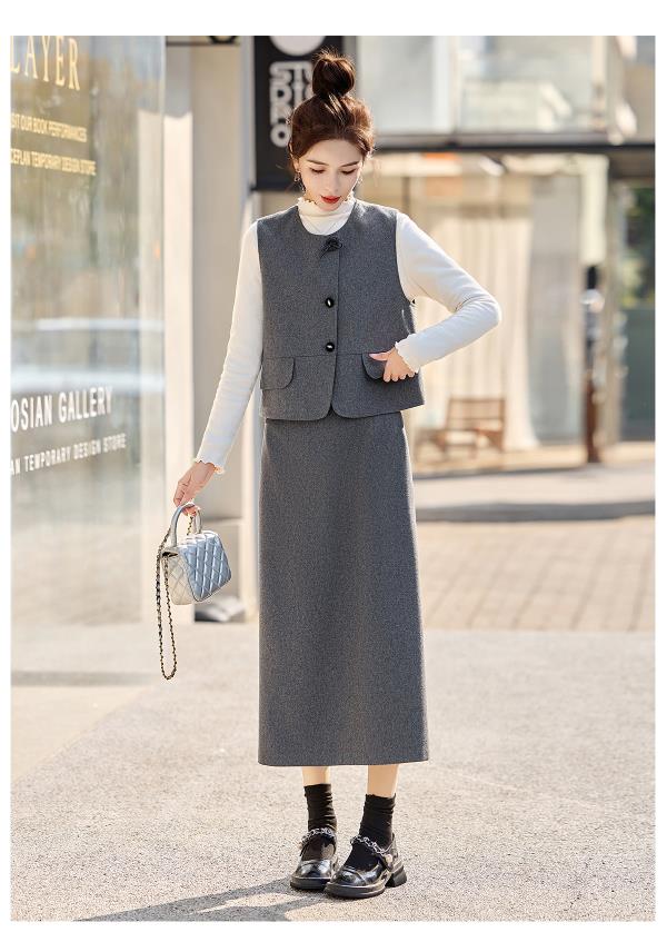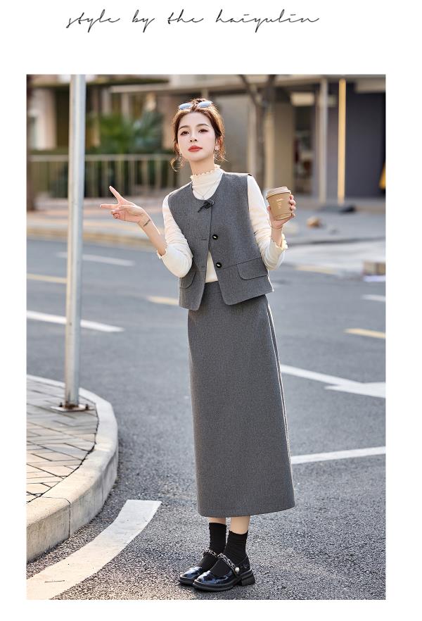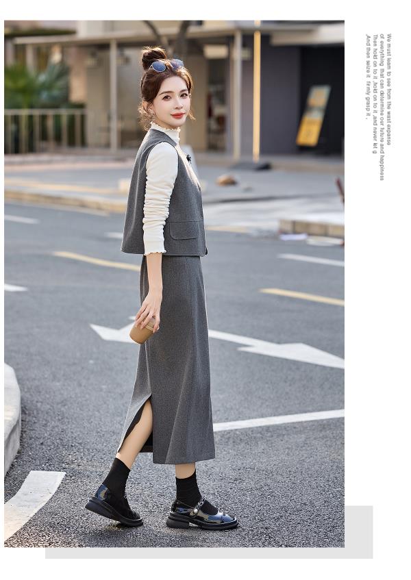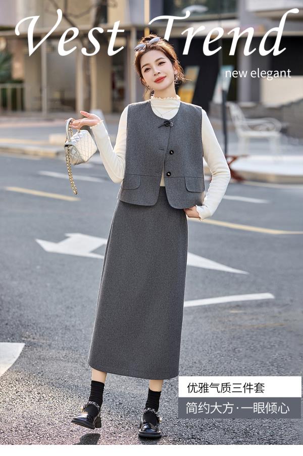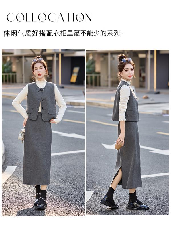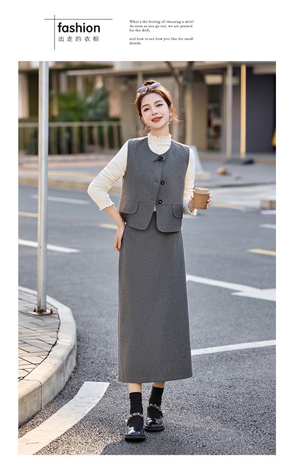 极简风灰色马甲半身裙套装,高腰百搭两件套通勤装HR-DMGY2668