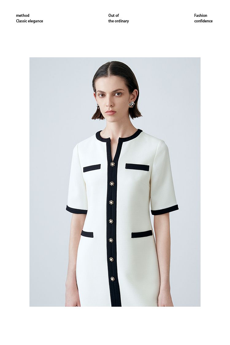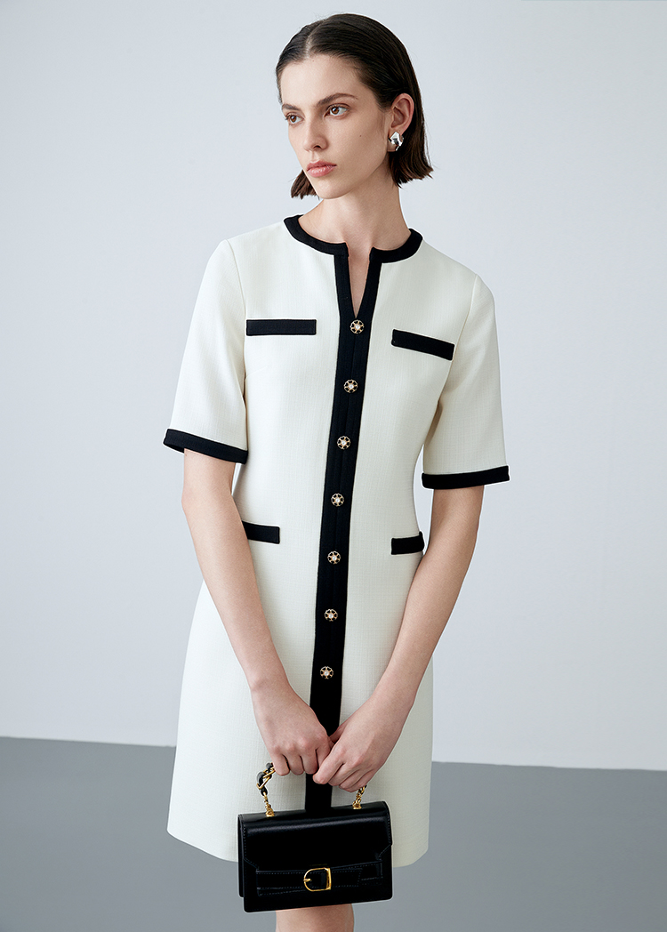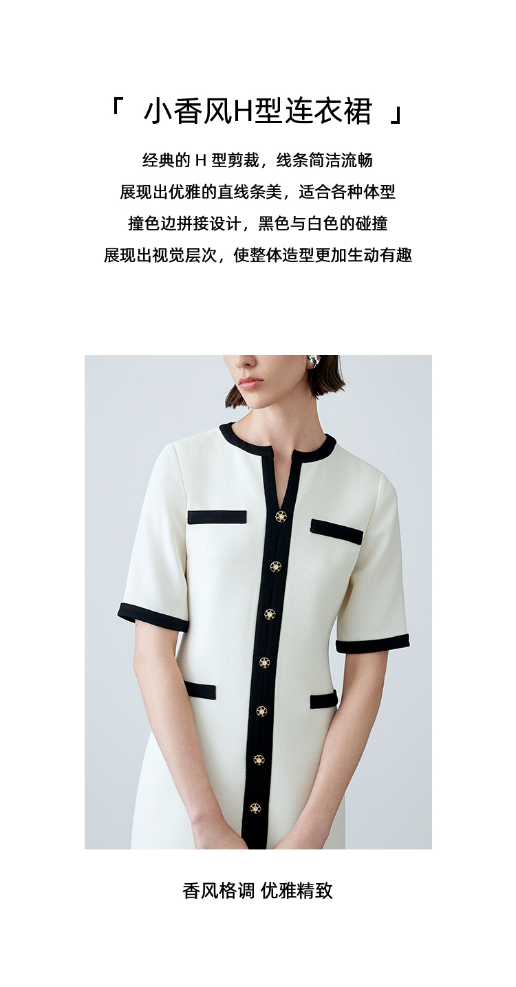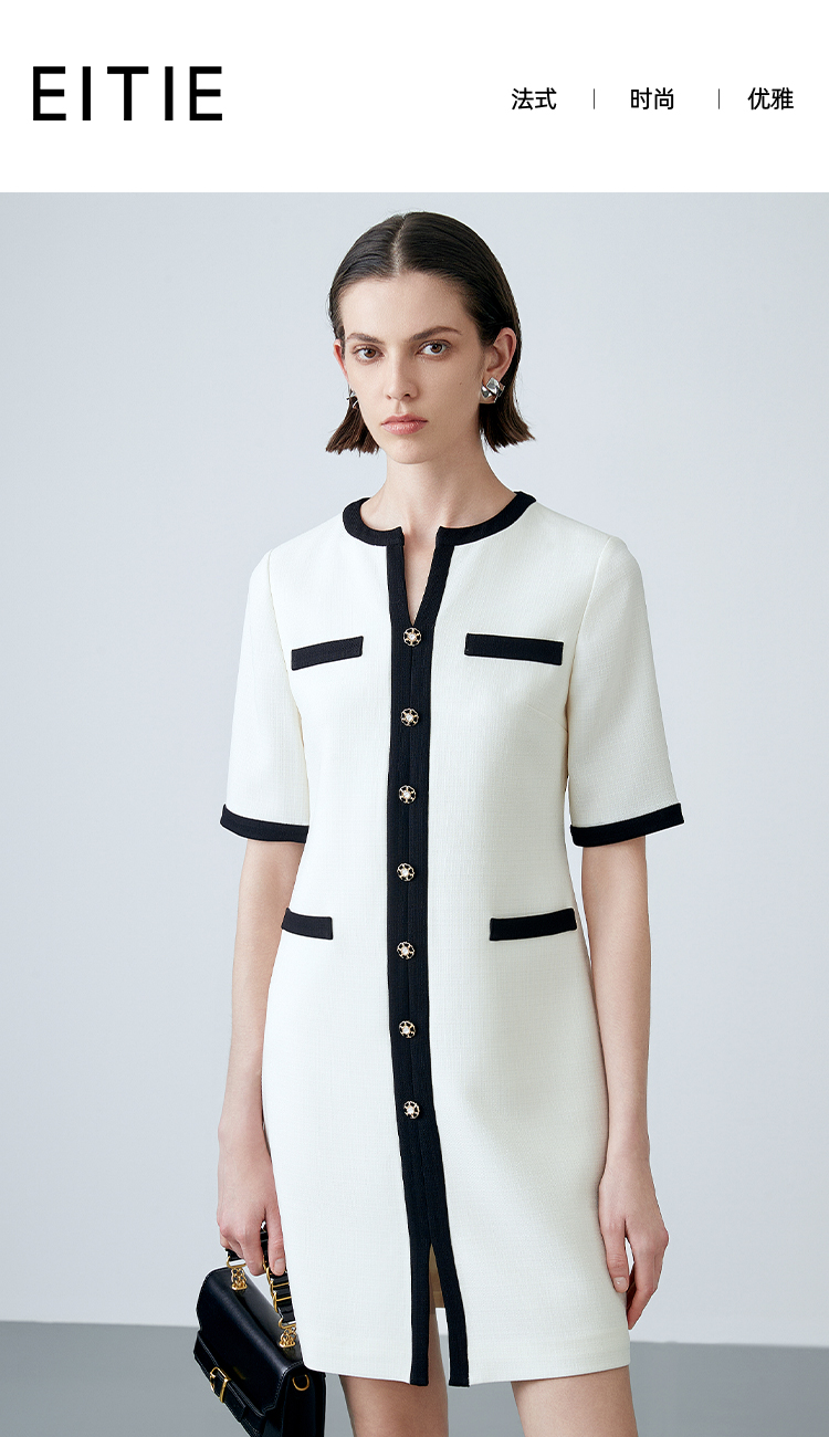 EITIE爱特爱春季新款气质大方时尚百搭撞色显瘦连衣裙7707410