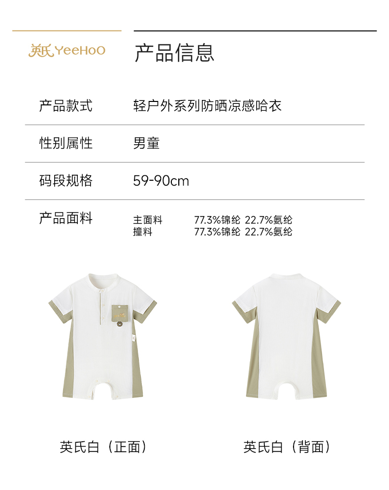 【商场同款】英氏婴儿衣服夏季男童短袖宝宝凉感速干防晒连体衣新