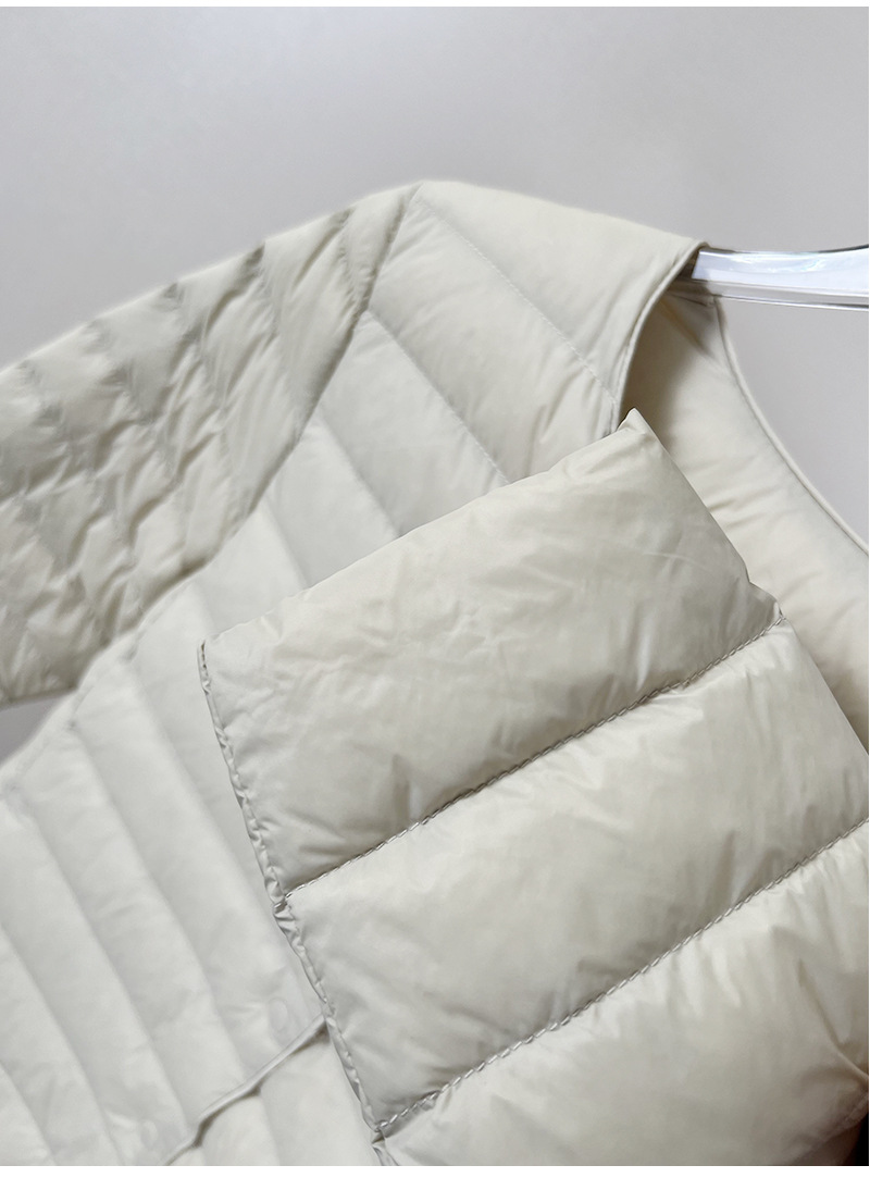 丁摩 羽绒服内胆女短款轻型90白鸭绒长袖薄款无领V领轻薄U家同款打底衫5zf-8902