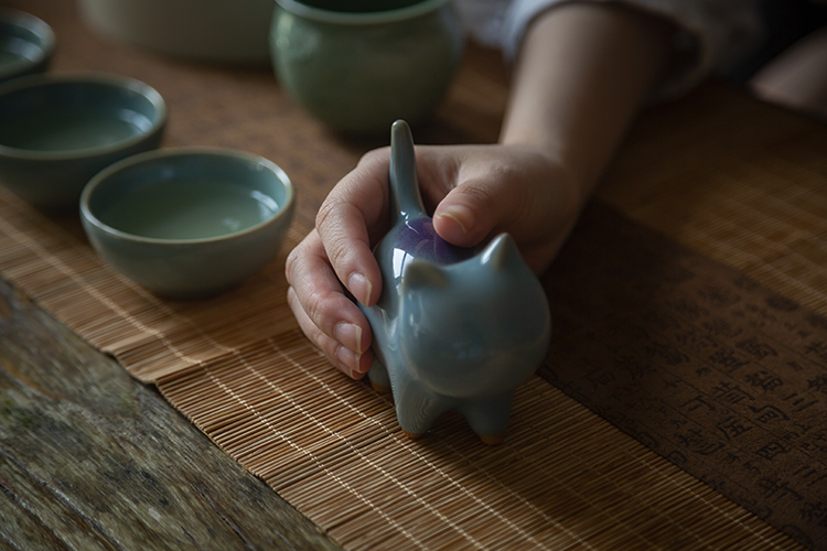 茶香记 禹州神垕钧窑 小猫摆件 釉色明艳 莹润多彩 憨萌娇俏 茶宠