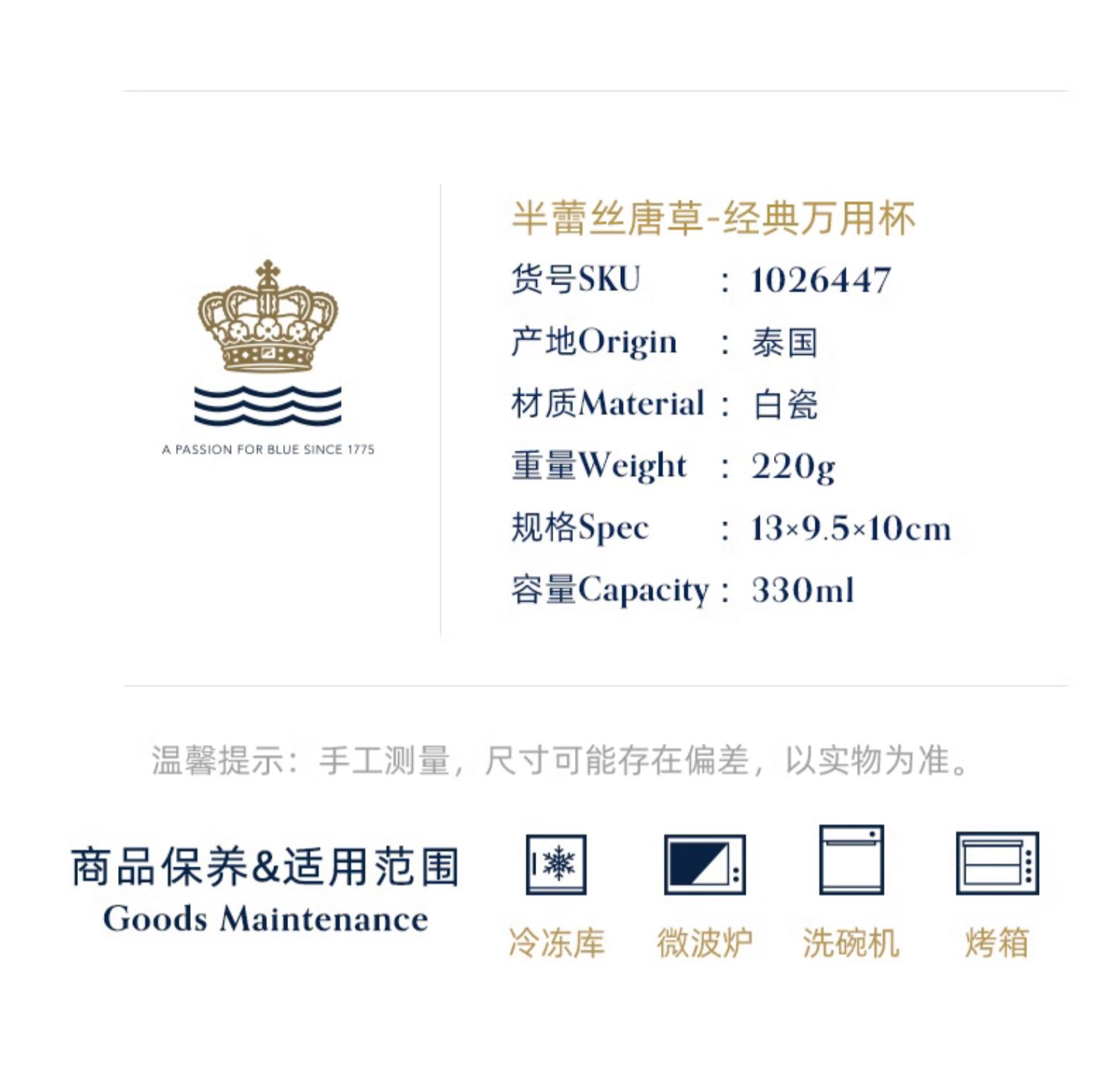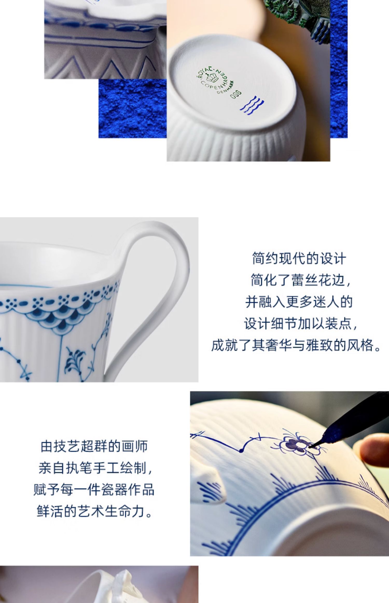【ROYAL COPENHAGEN】皇家哥本哈根半蕾丝手绘水杯子茶杯马克杯陶瓷杯