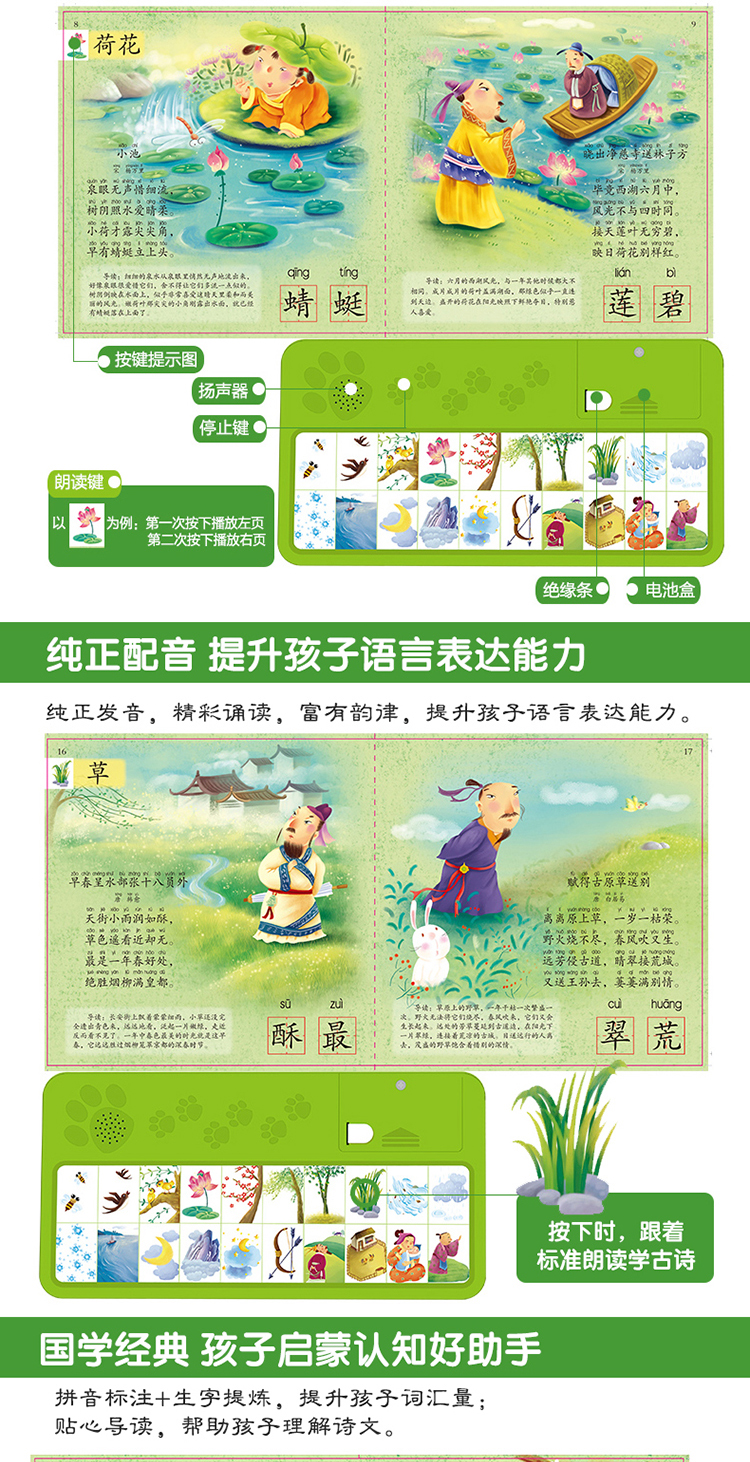 babygo妈妈测-乐乐趣发声书-我会念童谣-我会唱英文儿歌-我会读古诗-我会读ABC