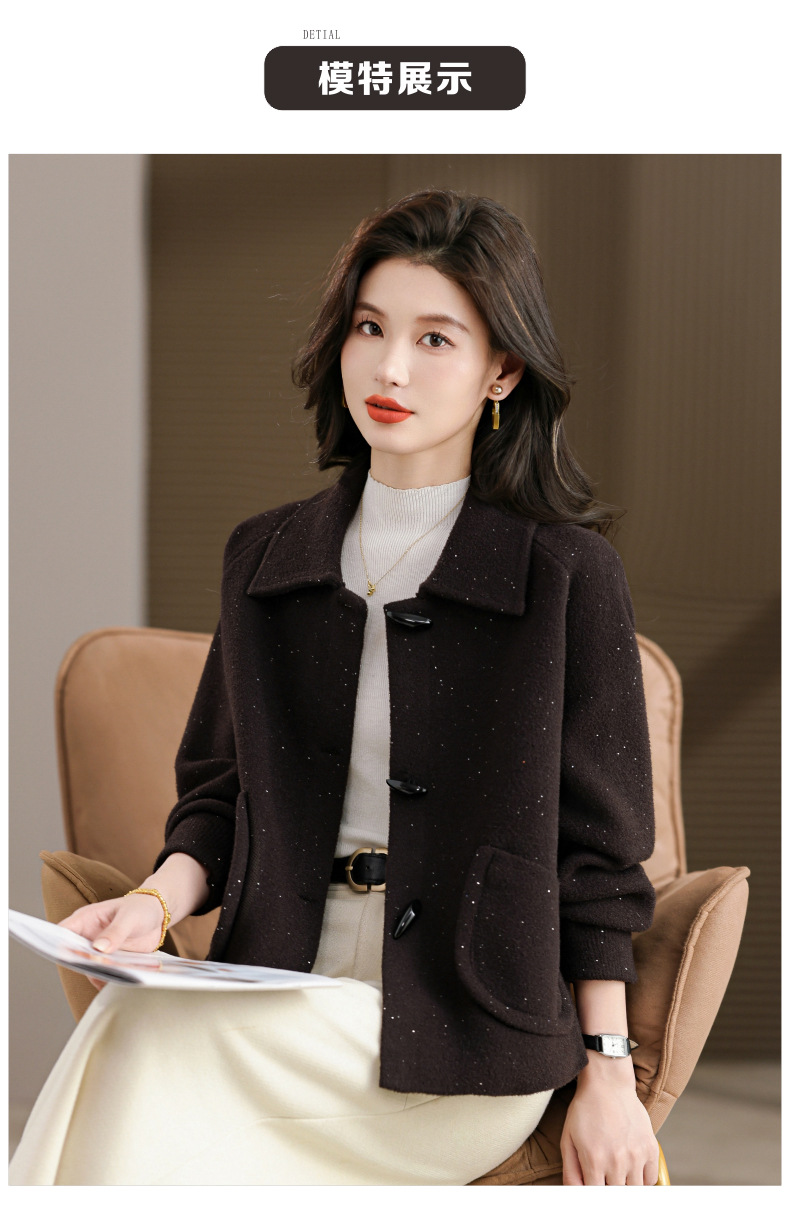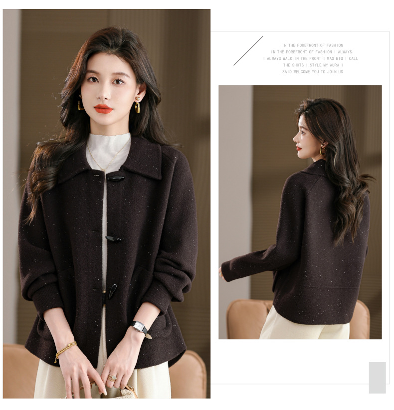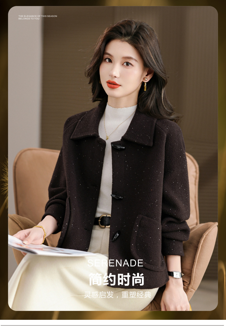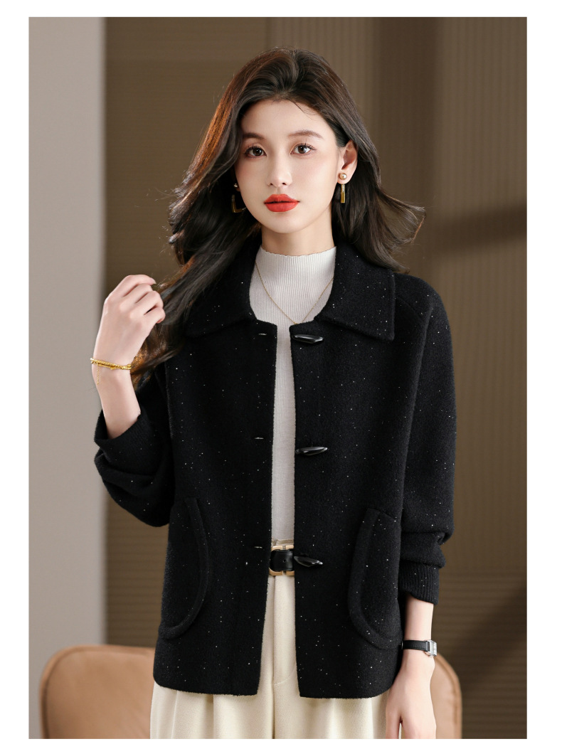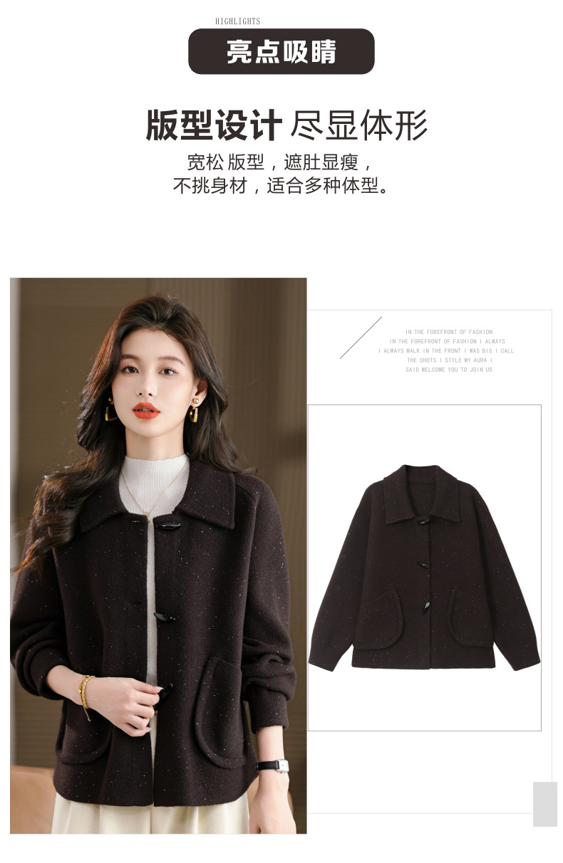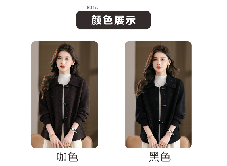 CC牛角扣外套春秋气质轻奢翻领上衣2025新款黑色毛呢开衫女宽松大码