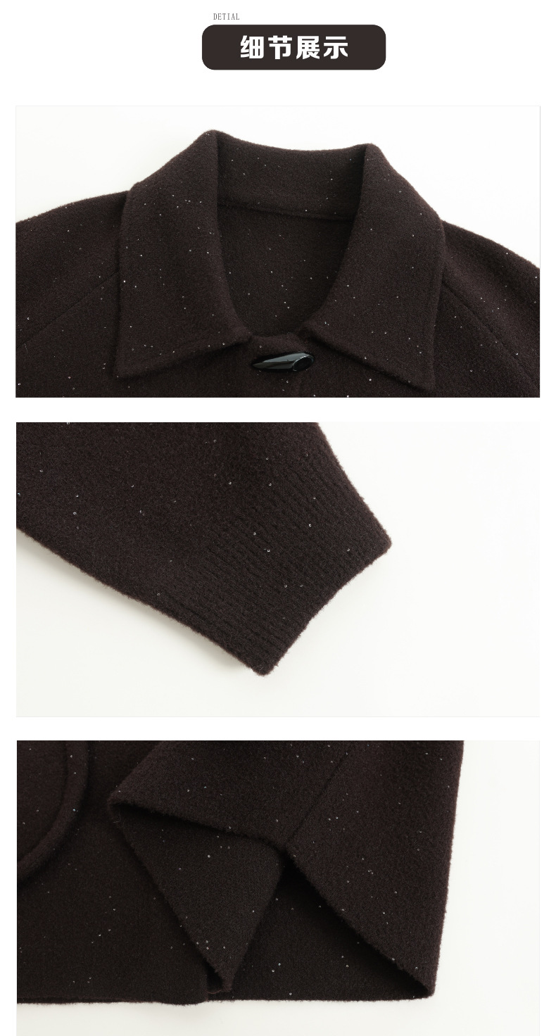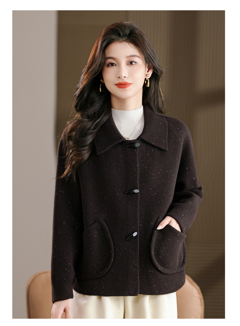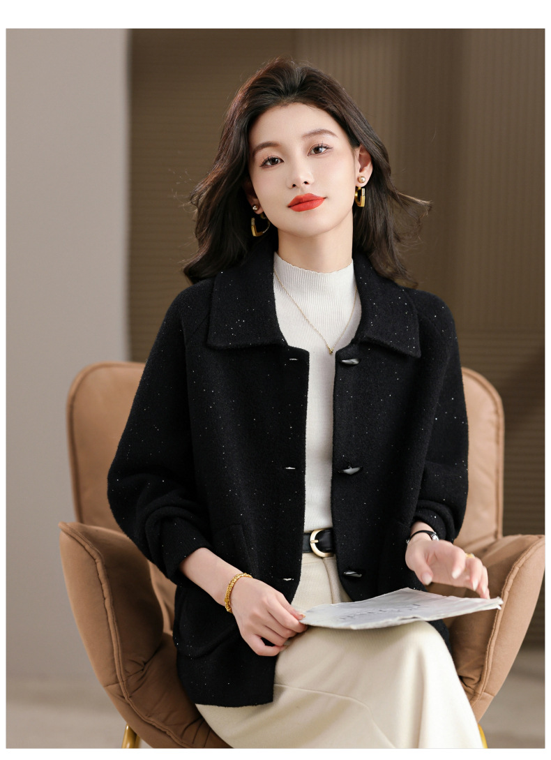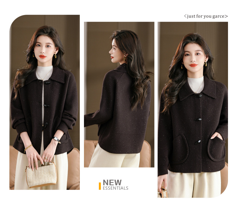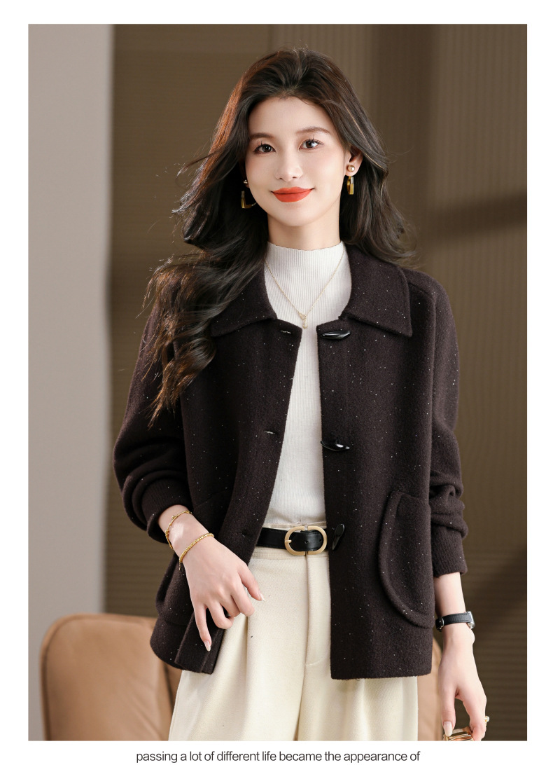 CC牛角扣外套春秋气质轻奢翻领上衣2025新款黑色毛呢开衫女宽松大码