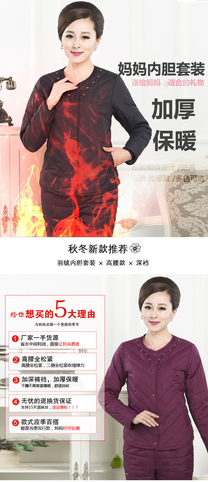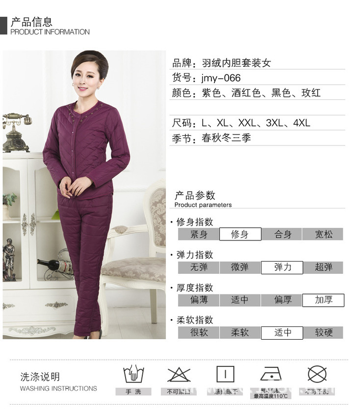 上海旗袍厂JMY-AOY-180羽绒内胆套装女装秋冬女士修身保暖衣