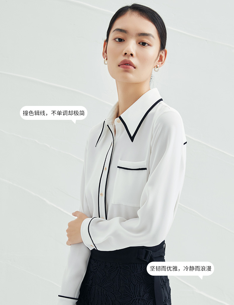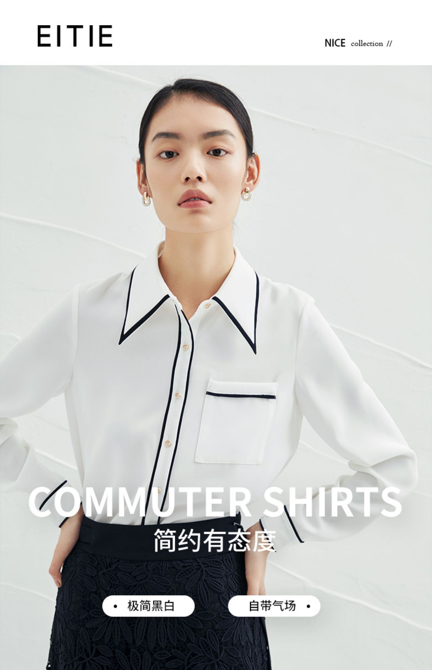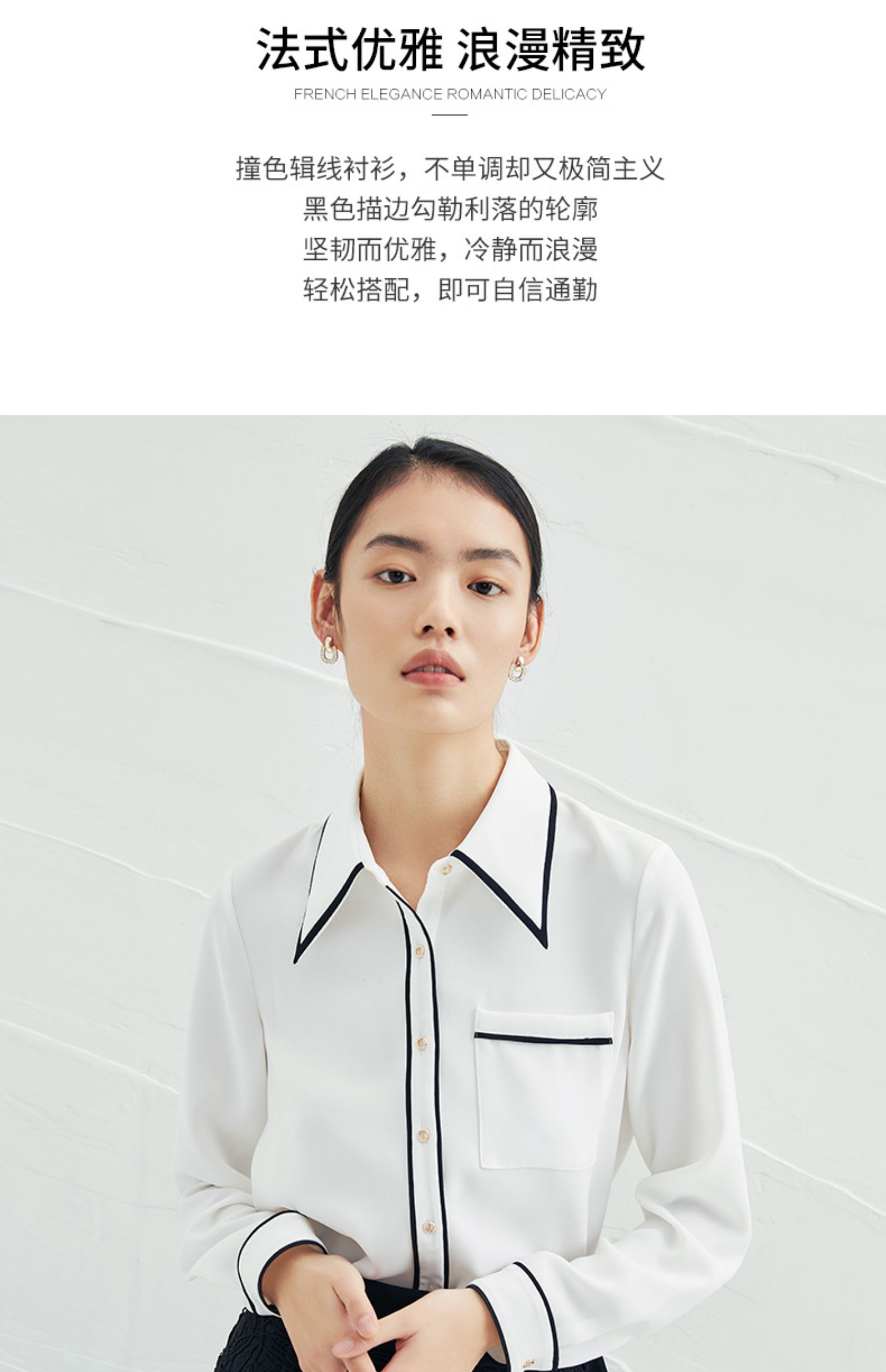 EITIE爱特爱春季新款时尚百搭显瘦撞色上衣气质通勤衬衫A2209907