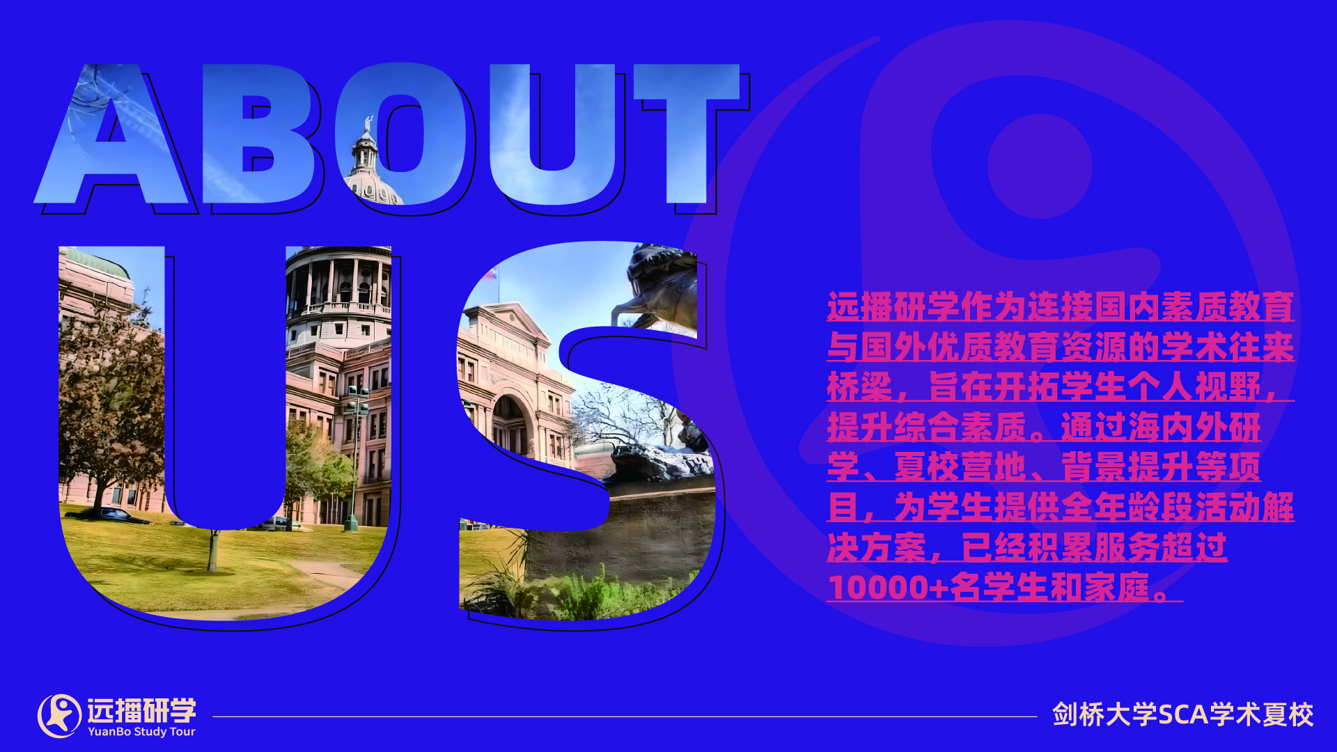 - 远播教育旗下研学品牌,致力为小初高学生提供优质研学项目,涵盖新加坡、加拿大等热门国家和北京、上海多个目的地城市,可以让孩子在游学中收获知识、技能和友谊,为未来的学习和生活做好准备!