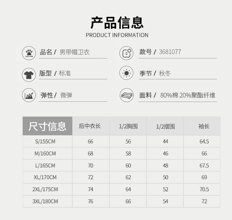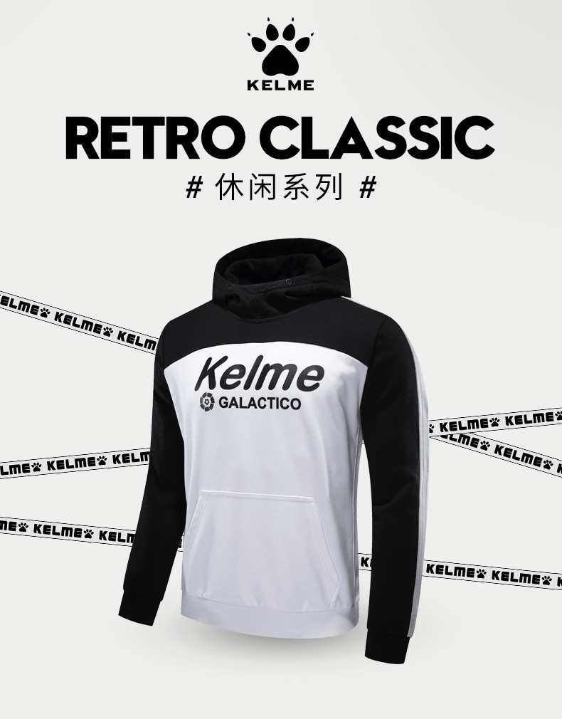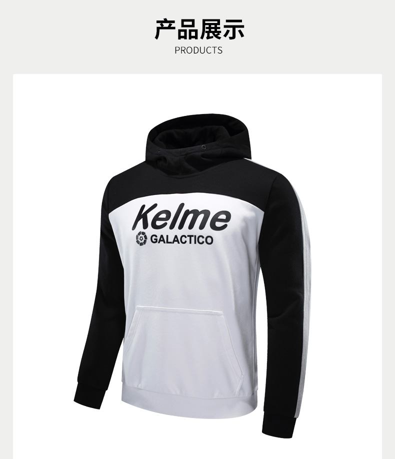 Kelme 卡尔美休闲运动新款男士套头卫衣棉潮流连帽拼接套头衫